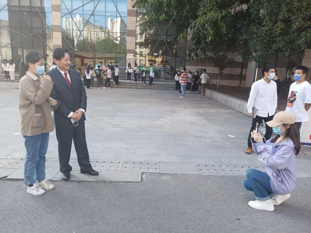 典礼结束,各新生代表纷纷与校长张德民教授合影留念。