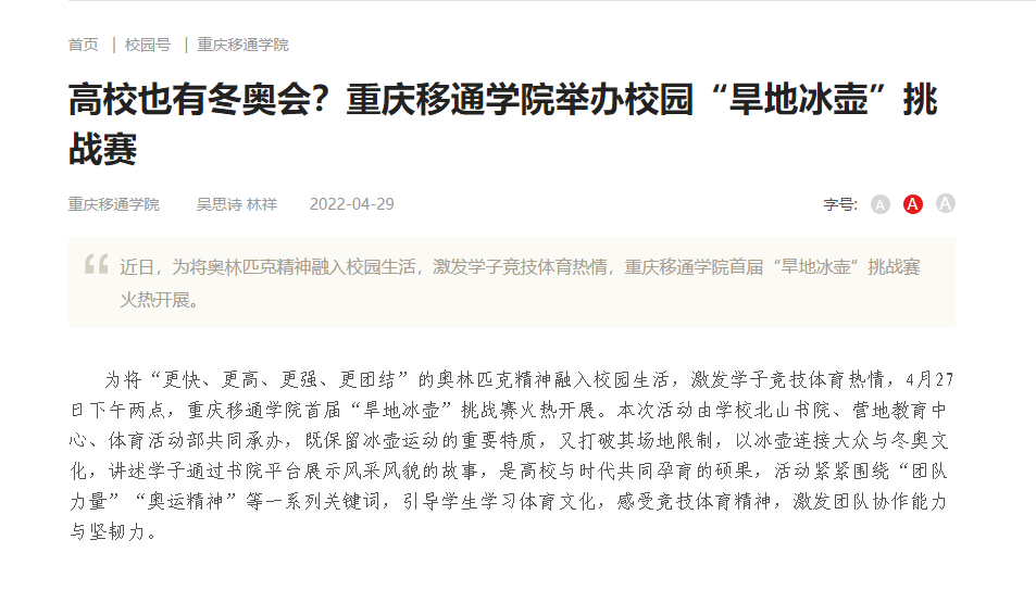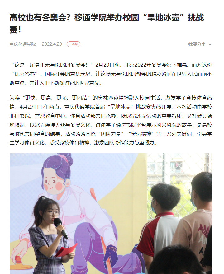【一点资讯】高校也有冬奥会?重庆移通学院举办校园“旱地冰壶”挑战赛!