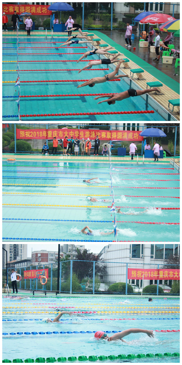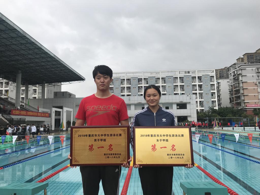 9月26至9月28日,由重庆市教委、重庆市大学生体育协会主办的2018年重庆市大中学生游泳比赛在西南政法大学举行。我校游泳队由罗聪(男队)和黎曼琳(女队)两位教练率队参赛。经过两天的激烈角逐,最终,我校男女队再次包揽了男子、女子甲组团体总分第一名。这也是我校游泳队连续第三年获此殊荣。