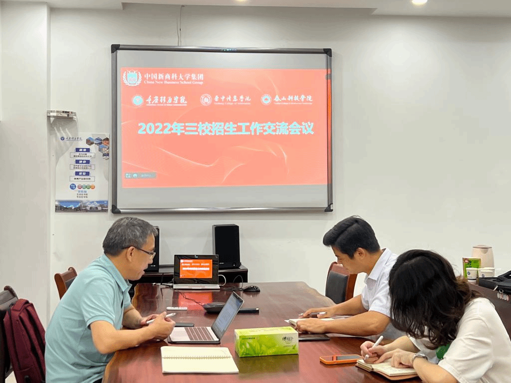为积极响应集团号召,加强三校交流合作,研究部署下一阶段招生工作,5月11日,重庆移通学院、晋中信息学院、泰山科技学院三校招生工作交流会议召开,集团副总裁尹邦满,重庆移通学院常务副校长、党委委员、綦江校区党委书记、管委会主任王永周,泰山科技学院常务副校长胡继连,晋中信息学院校长助理杨碧霞以及三校招生部门全体成员共计20余人参加会议。会议由中国新商科大学集团副总裁尹邦满主持。