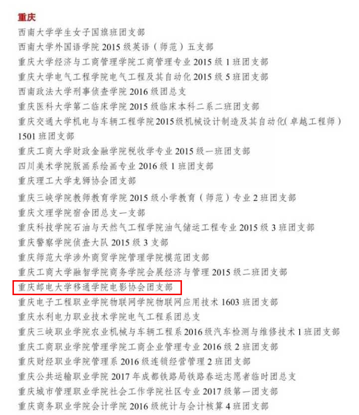 (重庆地区荣获全国高校“活力团支部”名单)