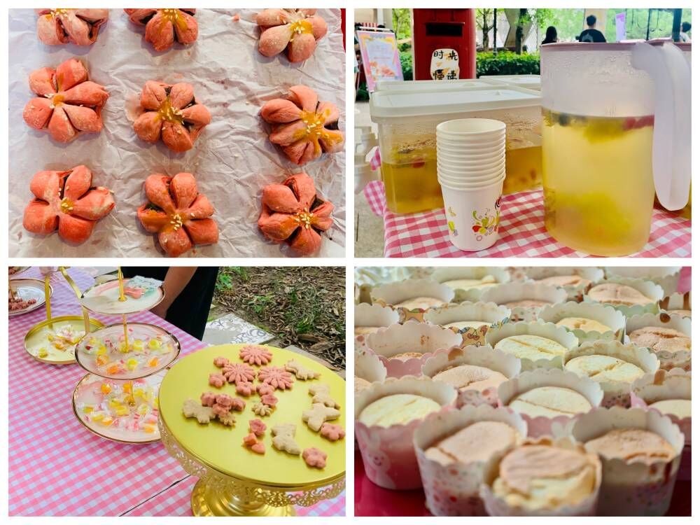 鲜花可以观色、闻香,还可以品尝?没错,来自廊桥书院的“千禾烘焙坊”与花果书院的“拾享工作室”共同为师生及小朋友开展了一堂以“花”为主题的烘焙小课堂,在柔软的面团里填上自己与中意的“鲜花”酱,烘烤完成后,软糯香甜,花香四溢,现场更有来自书院老师们的“珍藏”花茶供大家品鉴,玫瑰花茶入口微甜略带花香,胎菊微苦却很治愈,在初夏的夜里,一口“花”点一口茶,淡淡的香味好像一下就让人找到了熟悉的甜蜜和温暖。