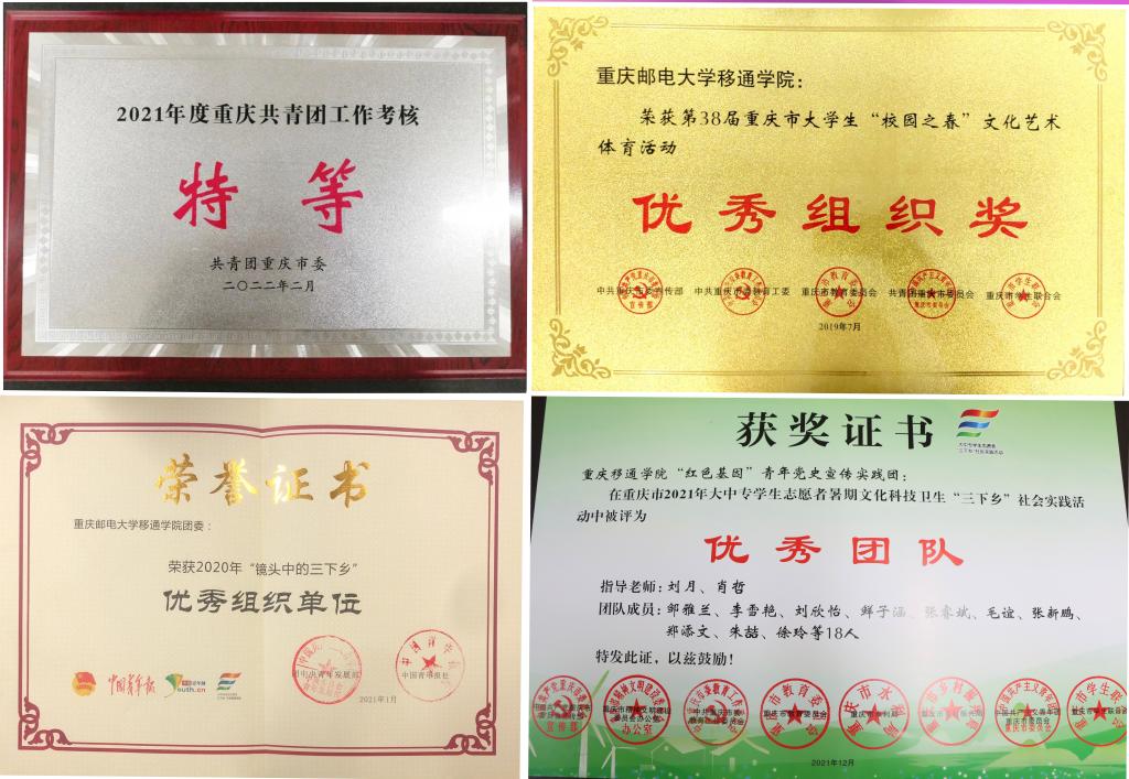 通过团学系统各级组织的协同并进,校团委于2022年、2018年荣获“重庆市五四红旗团委”、2019-2021年连续3年获重庆市共青团工作目标考核“特等”的优异成绩。