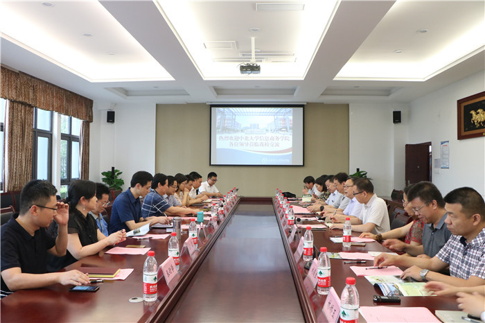 5月17日上午,中北大学信息商务学院院长王召巴,副院长吴晓军、吴其洲,院办主任贺小宇等一行11人来我校考察交流。院长张德民教授,院长助理尹浩亮、周伟、刘枚,相关院系、相关职能部门负责人在行政楼107会议室与其展开了交流讨论。