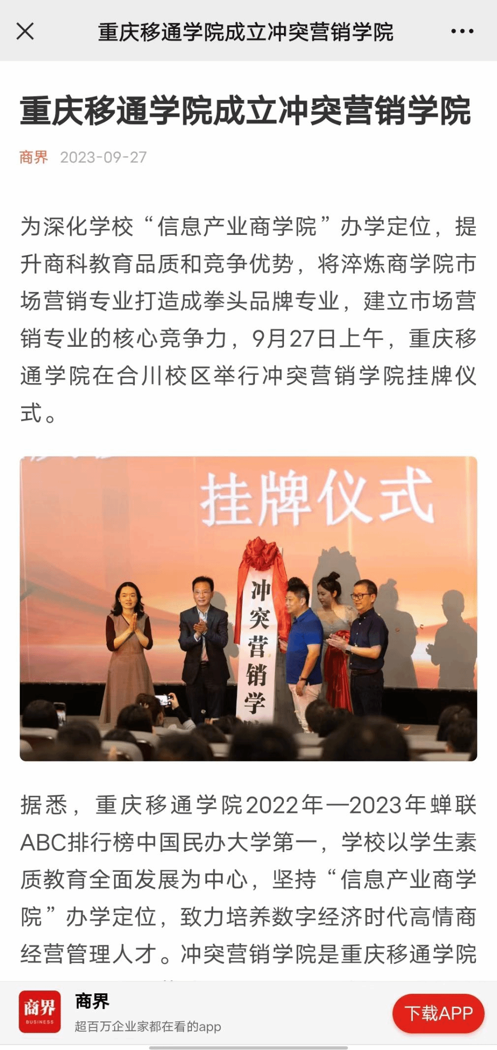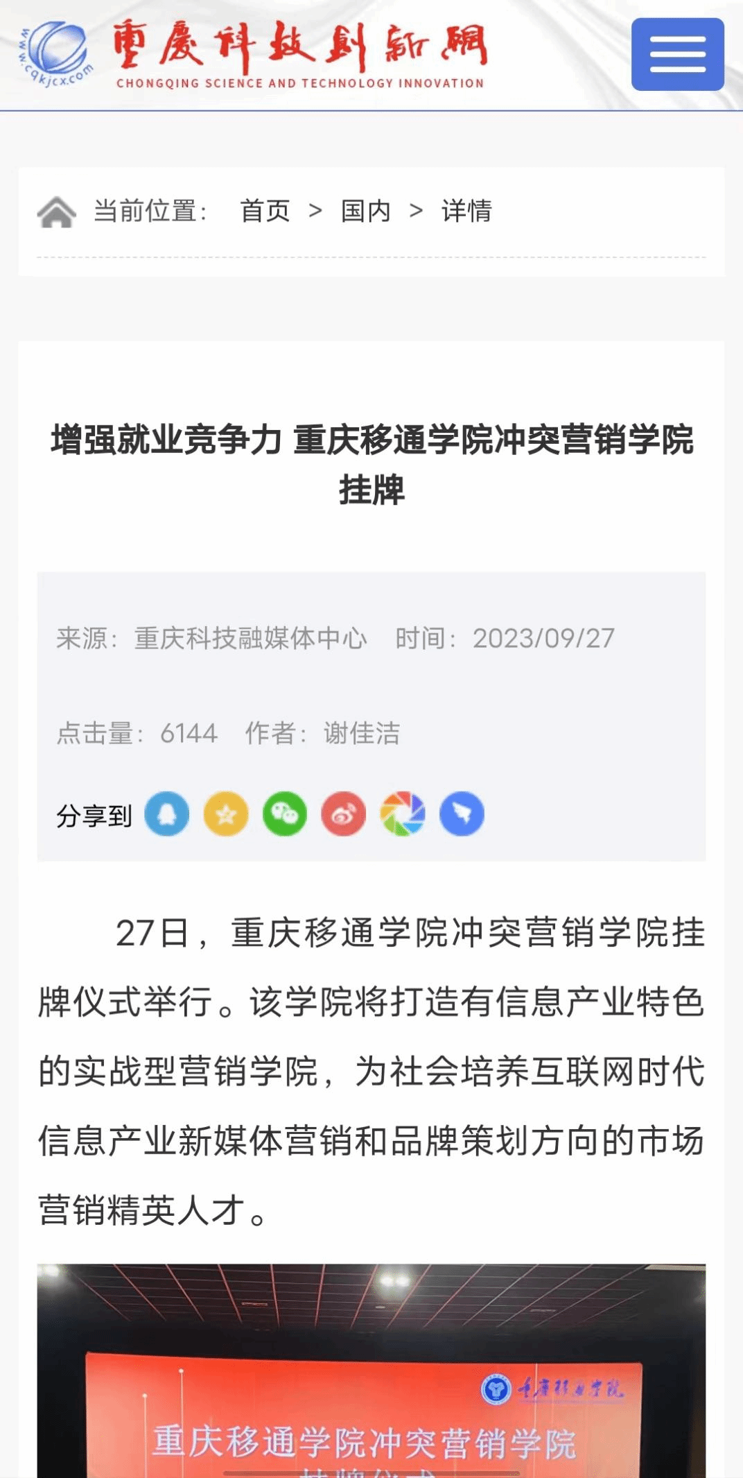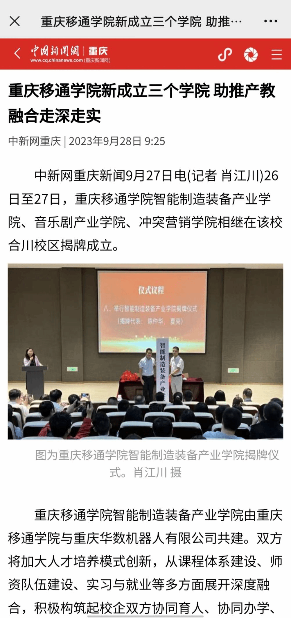 三大产业学院的成立,获得学习强国、中国教育在线、中新网、中央广播电视总台国际在线、商界、重庆科技融媒体中心、重庆科技报、重庆科技创新网等多家主权威、主流媒体关注报道。