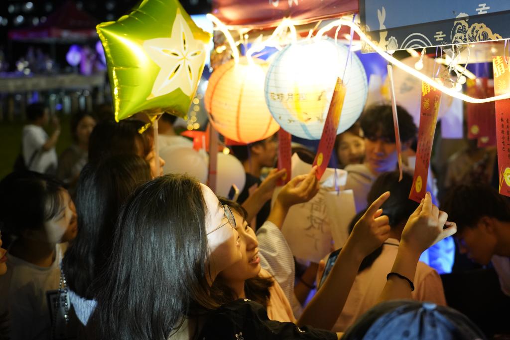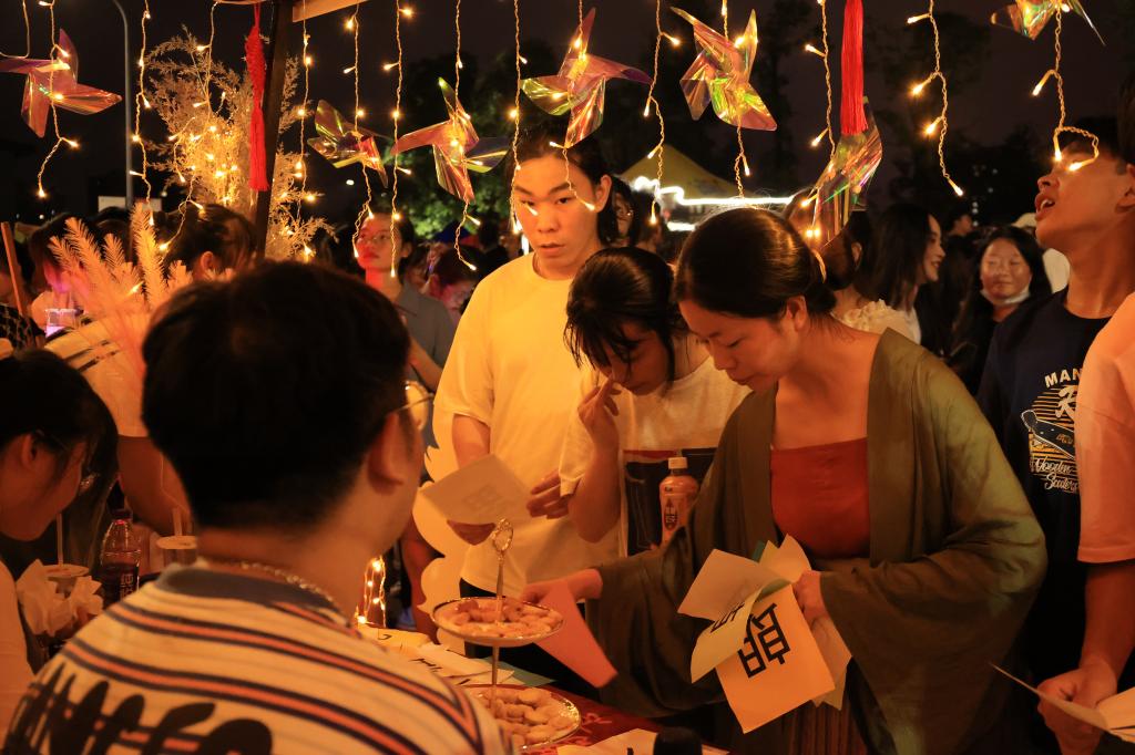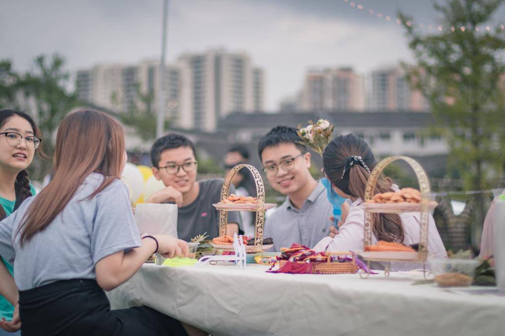 为了让九月的寿星们拥有更好的书院文化体验和愉悦的庆生氛围,此次生日会,行者公园书院群还以“星空”为主题设置了新潮的外围活动活动区域。全体师生们在“食尚乐享区”品尝酸梅汁、冰粉红茶、麻辣串串,感受“酸、甜、苦、辣”、体验人间四味,享受美食乐趣;在“星空许愿区”,执笔在专属许愿卡上写下愿望,并挂在福绳上,祈祷心愿在不久的将来能够实现;在“露营帐篷区乐享区”,三五好友围坐在“星光帐篷”前畅谈心声,拍照留念,记录美好。大家在欢声笑语中一起共庆良辰,所有成长中最简单的快乐和愿望都被印刻在行者公园的“繁星”夜空里。