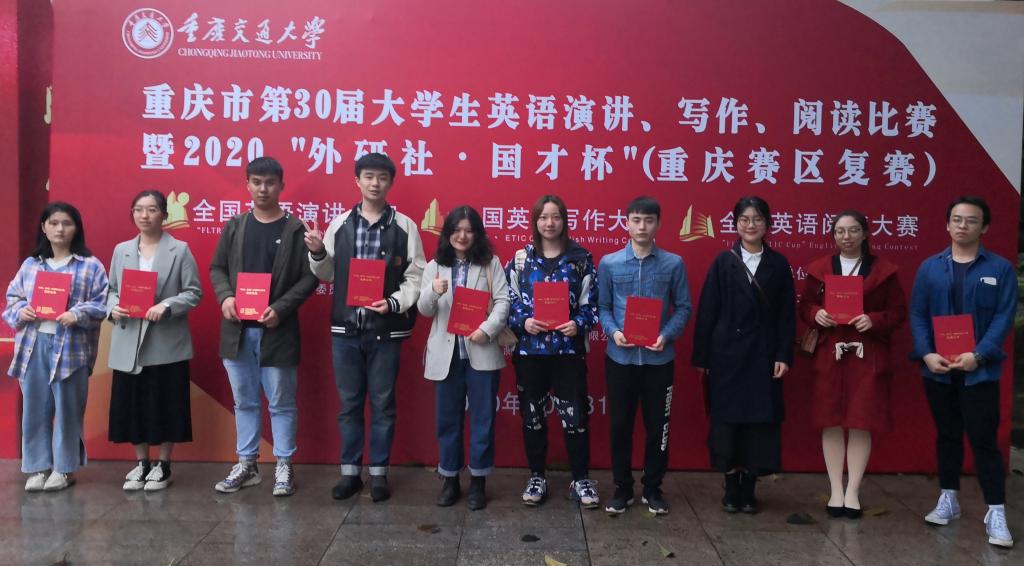 10月31日,重庆市第30届大学生英语演讲、写作、阅读比赛暨2020“外研社•国才杯”全国大学生英语演讲、写作、阅读比赛重庆赛区复赛在重庆交通大学举行,来自市内28所本科高校的307名选手参赛。在学校领导的关怀与支持下,外国语学院高度重视,认真遴选指导教师,精心挑选学生组队,积极组织校内培训。经过竞赛场上的激烈角逐,我校学子共有10名同学喜获佳绩,分获特等奖1名,二等奖2名,三等奖7名,其中外国语学院英语专业王顾民同学荣获2020年“外研社·国才杯”全国英语写作大赛(重庆赛区)复赛特等奖。此次竞赛由张旭宁老师带队参赛。