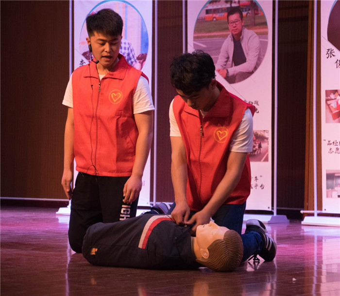 “蓝天”应急救助培训计划,救人于急,助人于危。随着现在环境污染和食品安全等问题,紧急事故、突发疾病的几率也越来越高。突发事件未能及时救护或不当处理会导致二次伤害,这就需要社会人士需要一定的应急救护技能。如果人人都学会紧急情况下的自救常识,就可规避很多不必要的伤亡。决赛现场自动化系的小伙伴们通过数据唤醒大家对急救知识的迫切,现场为同学们展示了基本的自救方法。同时邀请蓝天救援队的专业人员亲临现场,号召更多优秀青年参与到专业的急救实践活动中。