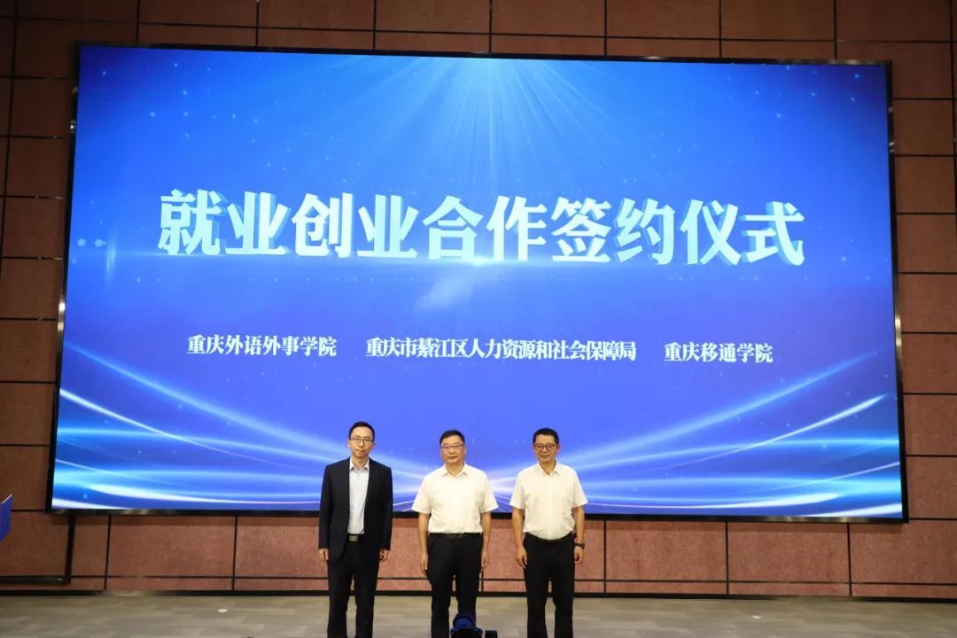 随后举行就业创业合作签约仪式,重庆市綦江区人力资源和社会保障局与重庆移通学院、重庆外语外事学院进行了合作签约,未来将进一步加强校企合作,共同推动青年就业创业事业。