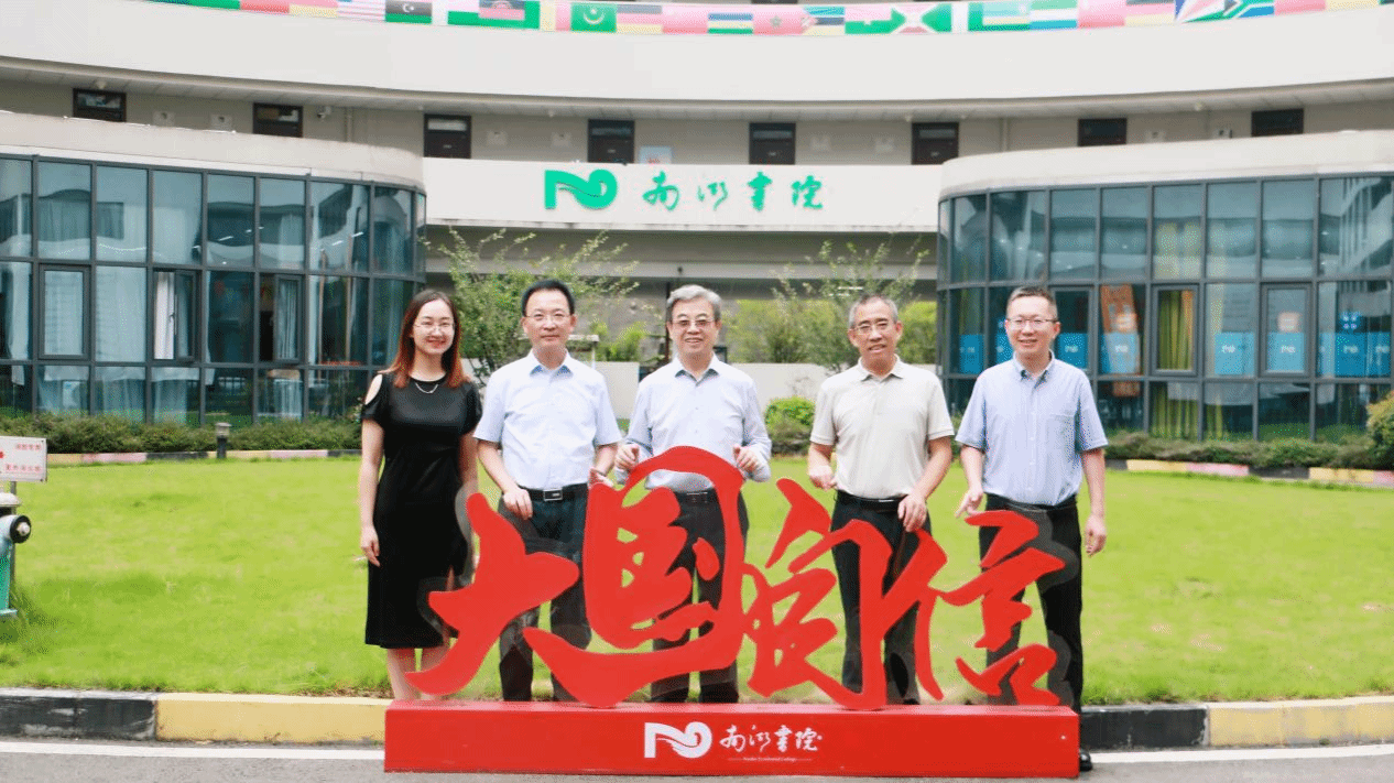 王立生在集团副总裁尹邦满、校长吕翊、副校长张衍学陪同下,参观了远景学院、南湖书院及天空书院。王会长对学校独特的书院制教育模式给予充分肯定。