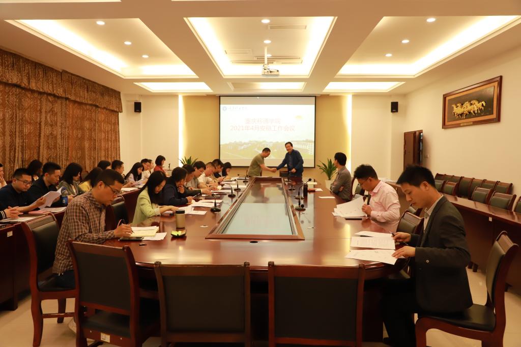 4月29日下午,我校2021年度4月份安稳工作会议在我校行政楼107会议室顺利召开。校长张德民、副校长周伟、学校安全稳定工作领导小组成员及各分管学生工作副院长出席本次会议。会议由保卫处副处长彭洪主持。
