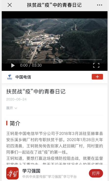 报道链接:https://article.xuexi.cn/articles/index.html?art_id=3646576529967246550&item_id=3646576529967246550&study_style_id=video_default&pid=&ptype=-1&source=share&share_to=wx_single&from=timeline&isappinstalled=0