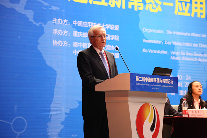 德国大学校长联席会副主席Karl-Dieter Grüske对中国应用技术大学联盟以及重庆邮电大学移通学院表示了由衷的感谢。并认为“驱动一个国家发展的因素永远是创新。”一是基础研究,能够为新的科学理念的诞生做出贡献,而这些常常是大学的职责;第二是需要在校企合作方面做更多的努力,充分的利用这些校企合作结合更多实践的经验;第三高校和企业界的合作,也能够在知识转移上起到巨大的促进作用。同时,他还介绍了德国和中小企业开展的紧密合作能够促进集群效应的建设或是集群项目的建设。全球化和国际化,对校企合作工作带来重大的影响。在国际的合作中,这些参与到科学界和学术界以及校企合作的高校也从中获益。