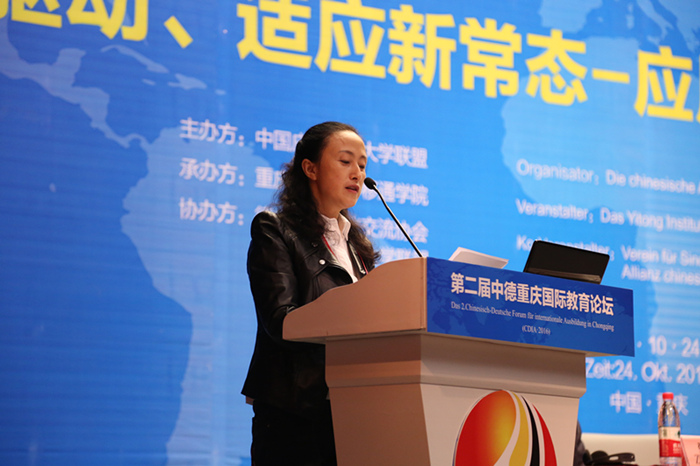 李茂军女士在发言中希望通过本次论坛,增强中国应用技术大学联盟成员的转型改革、合作交流、学术研究,促进产教融合和协同创新机制的建立,探索应用技术大学建设与发展的路径,推动高等教育分类办学和特色发展。并介绍说:“目前我校中德学院在校生1800人,也是国内最大的中德合作办学机构,同时我校还成立了德国研究院,聚焦在德国应用技术大学研究领域,希望能够给政府和业界提供一管之见。”
