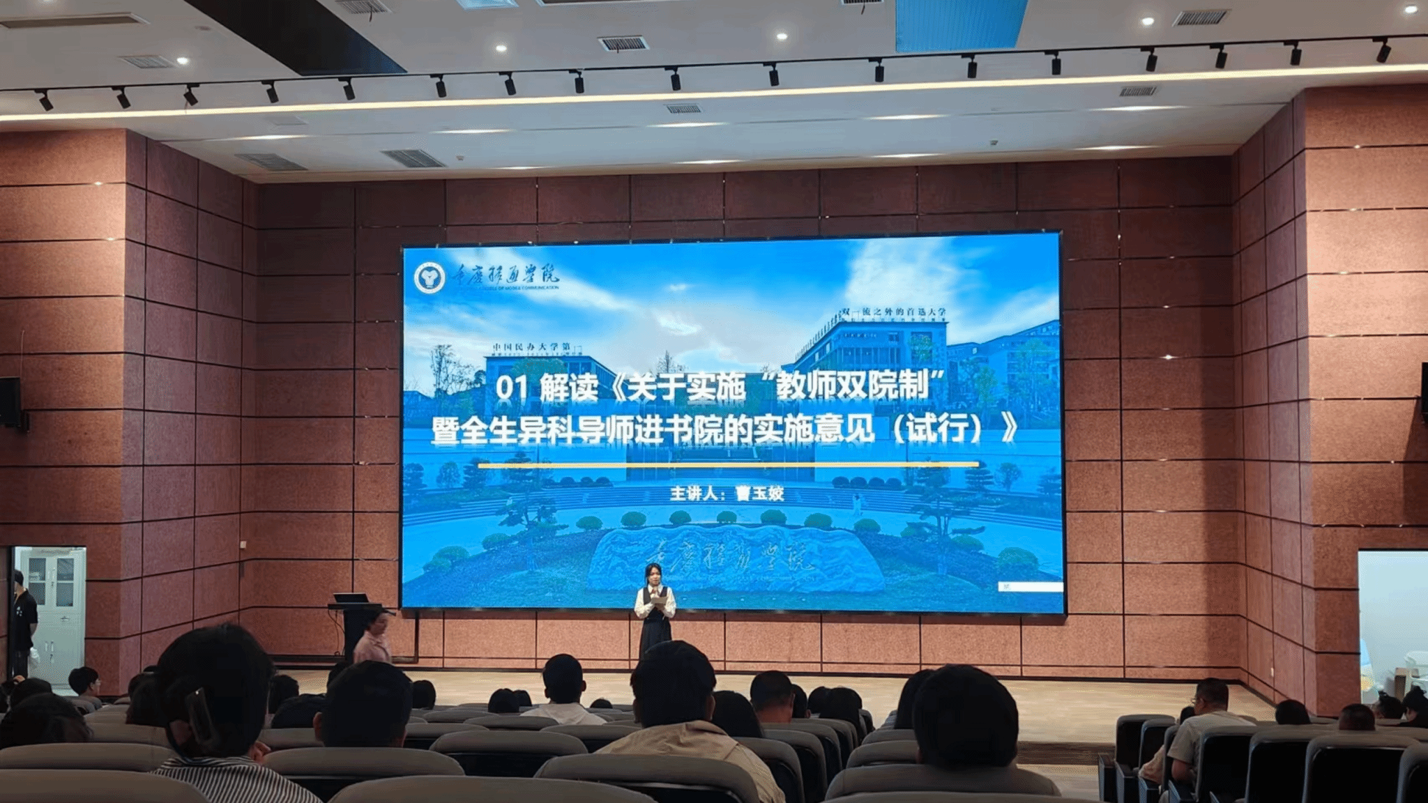 自2021学年全面推行全生异科导师制以来,重庆移通学院结合本校实际,积极落实相关要求,将全生异科导师制工作落地生根。为进一步提高导师育人工作的针对性、主动性和实效性,切实增强异科导师的育人意识和实践能力,充分发挥全生异科导师“知心朋友、成长伙伴、人生导师”的育人角色,4月18日下午两点,綦江校区全生异科导师们齐聚贤者楼423报告厅,开展了阶段性专题培训,培训内容包括全生异科导师进书院实施方案解读和赏析第62届奥斯卡最佳影片《死亡诗社》,启发异科导师育人思维。