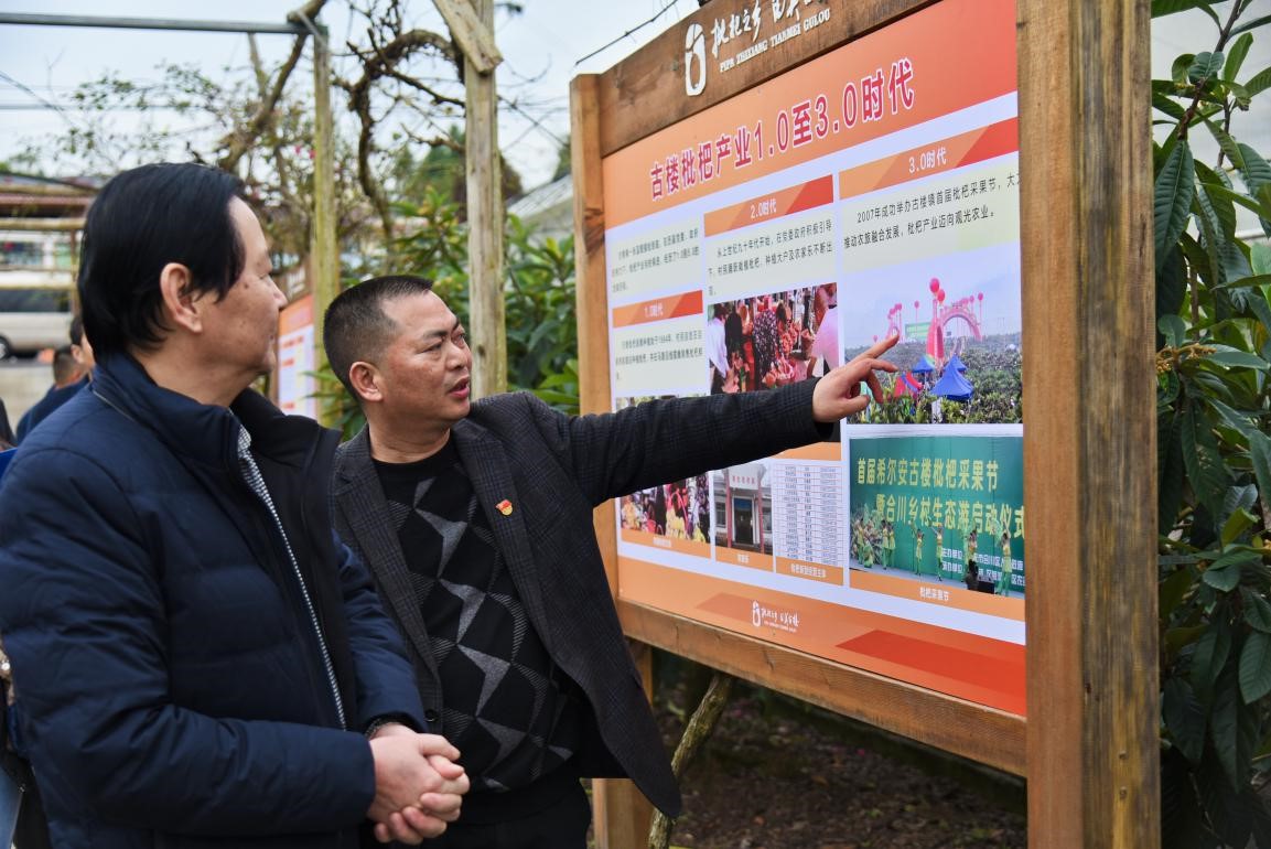 通过走访古楼镇红枫林景区、大自然枇杷园、枇杷生态动物园、摇金村、枇杷花茶加工厂,多方面了解当地重点产业、运营现状、存在的问题。徐英禄镇长详细介绍了当地基本情况及乡村振兴产业规划,他表示希望在与我校的交流合作中可以共同探索出古楼镇产业带动乡村振兴的发展路径,将高校资源与地方产业紧密结合起来。据悉古楼镇多年来重点发展枇杷种植产业,并围绕枇杷进行一系列加工与开发,种植技术及营销手段历年来不断升级,已成为古楼镇农业发展支柱性产业,但在销售渠道及品牌打造上仍存在诸多问题,限制了当地产业进一步发展。当地还拥有一定乡村旅游资源,但因缺少包装推广未能实现资源价值最大化。