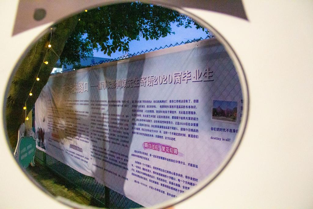 “路口有个stop,不是人生停在这里,是毕业那天驻足片刻,在这儿想一下,过了这个路口,绿树成荫、繁花似锦、落英缤纷。”董事长敦敦教诲;“你们自五湖四海到移通来,将赴天南地北去。祝同学们毕业快乐,愿此去经年,以自信、以才华、以爱心、以奋斗成就理想,收获幸福!”各职能部门、院系的各种祝福语,依次排列张贴,形成了一堵包含深情的“祝福墙”。