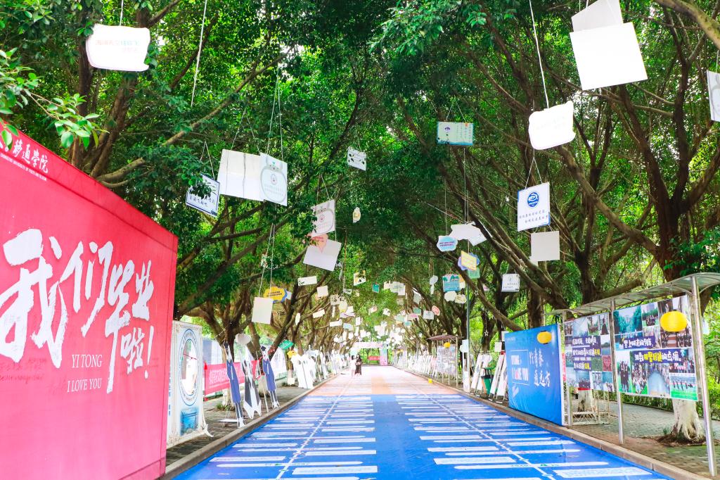 疫情带来挑战,毕业典礼未能像以前那样隆重举行,缺少了仪式感。但是毕业生与学校的情谊从未割舍,我校用特殊的爱在南校区运动场旁主干道,设计以“YI青春,通远方”为主题的“毕业生·移通辉煌路”,赠予2020届毕业生难忘的记忆,让其“穿越时空”重新回味四年的美好校园时光。