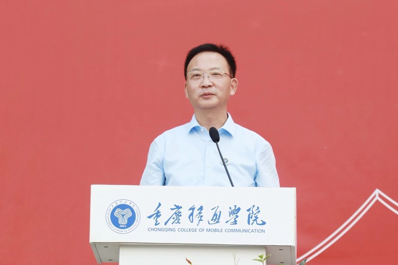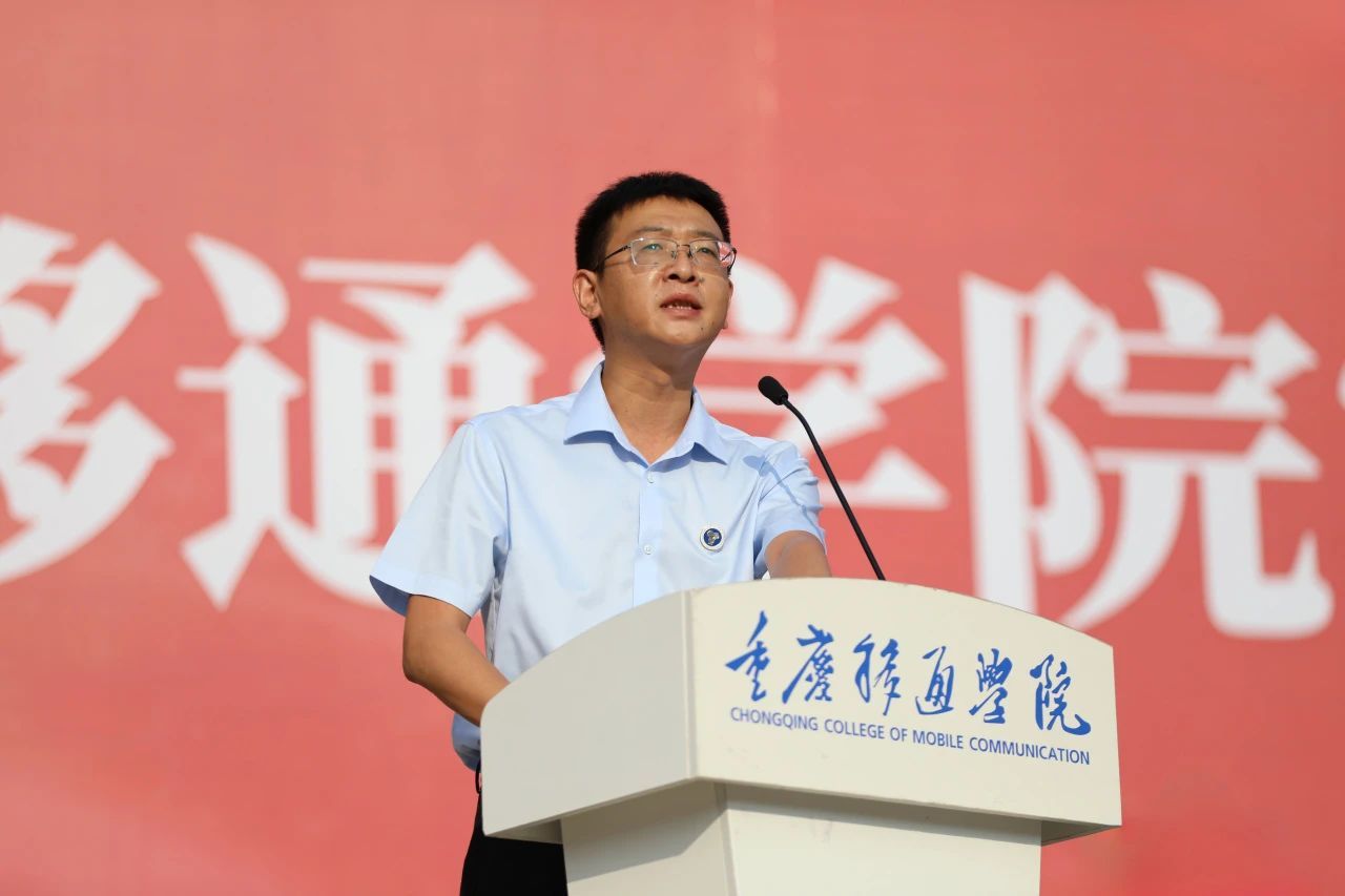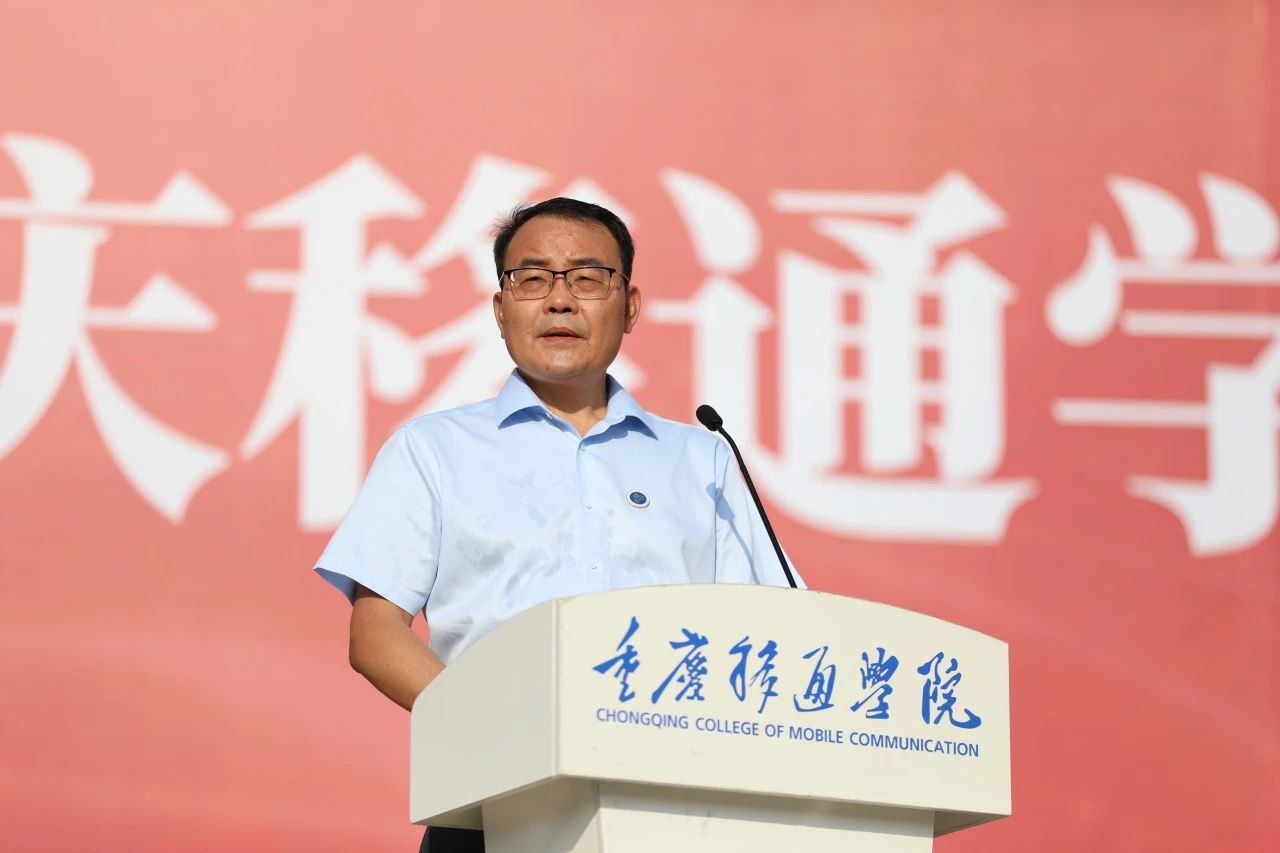 学校党委书记、政府督导专员何先刚在致辞中表示,十分高兴与2024级新生们共同开启在移通学院的学习与成长之旅。他谈到,重庆移通学院已连续三年荣登ABC排行榜中国民办大学第一,并创新性地探索了“四位一体双院制+特色课程”的人才培养模式,从极致的完满教育、充分的通识教育、基本的商科教育、必要的专业教育四个方面协同推进,全面落实素质教育。移通为学生们提供了良好的学习环境、多元化的锻炼平台和专业化的就业创业指导,并通过设置特色学院、举办各类赛事活动等措施,充分助力学生们全方位发展。何先刚书记希望新生们树立远大的理想和目标,在不断的学习和实践中提升自己的能力,为未来的人生打下坚实的基础。