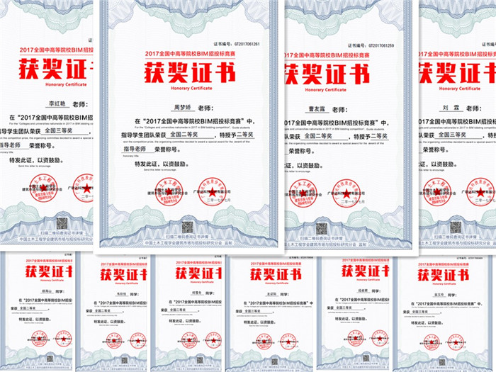 本次大赛由中国土木工程学会建筑市场与招投标研究分会与广联达科技股份有限公司共同举办,吸引了全国200余所高校350支队伍参加。本次竞赛内容分为企业注册备案、BIM招标阶段、BIM投标阶段及开评标阶段四个部分,参赛小组在基于已有的课堂知识上需学习多个工程相关软件。参赛其间,同学们为了不耽搁学校课程,常常利用晚上空余时间聚集在一起共同完成任务,在遇到问题时积极和指导老师进行探讨。两组团队内的每个成员都对每个阶段任务的重点项目有所掌握,并且一起观看一系列的优秀作品,从中得出启发和灵感,对各阶段任务都非常上心,较完美地完成了各阶段的任务。正因为这种坚持不懈,迎难而上的精神,最后才能够提交比较完美的作品,喜获佳绩。