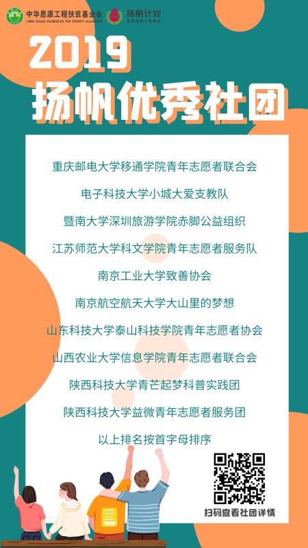 5月21日,中华思源工程扶贫基金会扬帆计划公布入选2019年度优秀社团名单,我校青年志愿者联合会与电子科技大学小城大爱支教队、暨南大学深圳旅游学院赤脚公益组织、南京航空航天大学大山里的梦想等十所高校社团同时入选,在西南地区高校中独树一帜。
