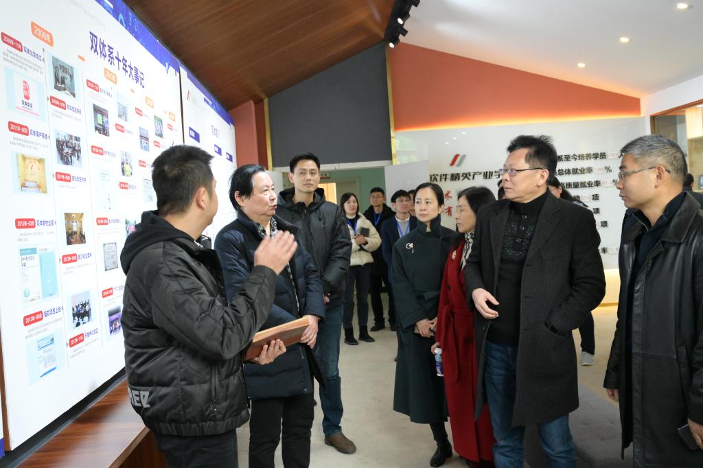 调研组实地参观了我校远景学院、钓鱼城科幻学院、爱莲书院、双体系软件精英产业学院,在校领导介绍下,对我校教学环境、教学资源、书院制建设等特色育人模式有了深入了解。张校长表示,我校始终坚持探索高等教育改革新路,通过“四位一体双院制”特色育人模式,围绕“以学生为中心”,明确信息产业商学院的办学定位,搭建多元导师及双院育人平台,创新建立特色实训基地,全力培养数字经济时代高情商经营管理人才。