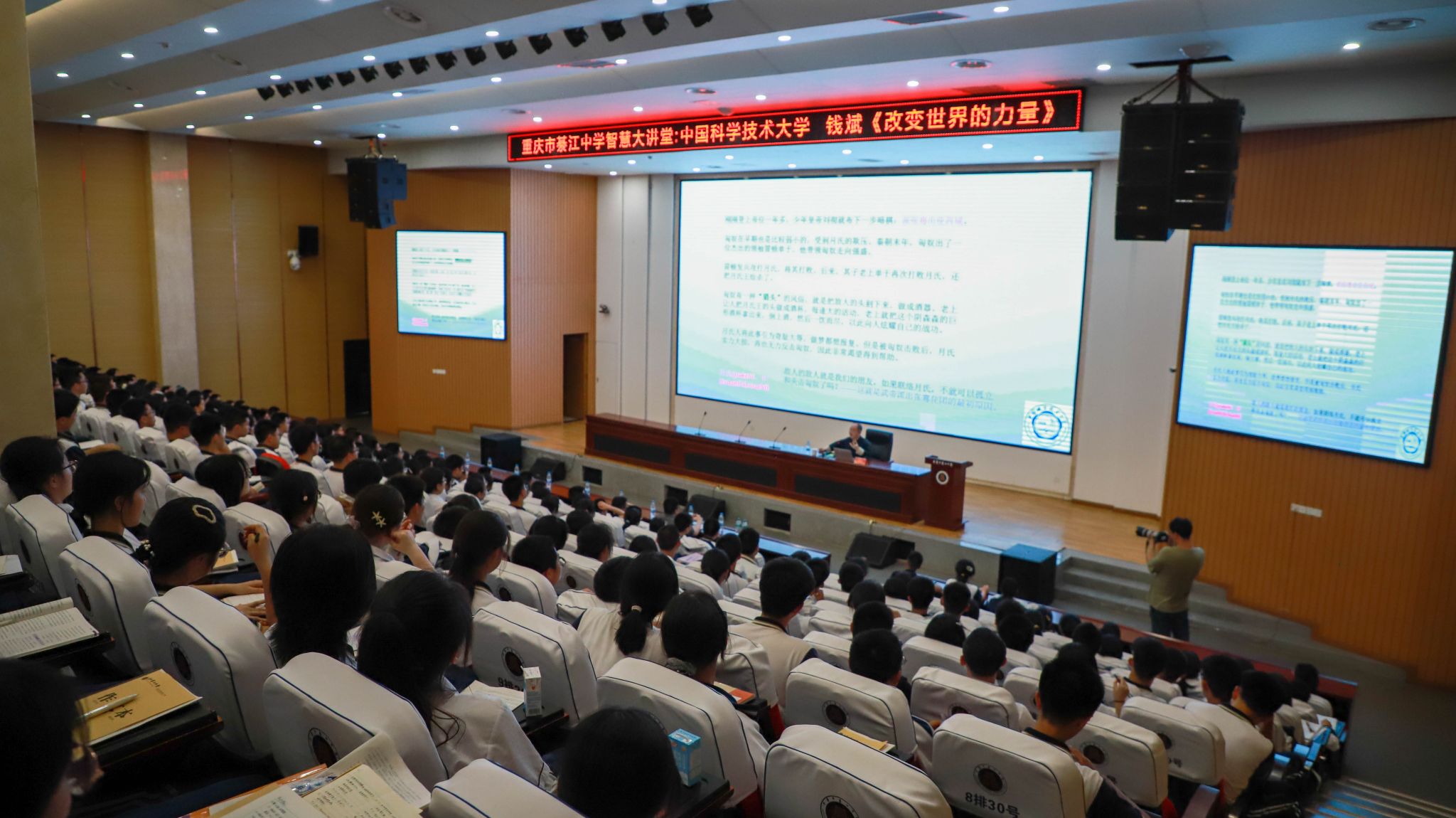 5月15日,由我校名师课堂办公室发起,联合招生处共同举办的“‘名家·名师大讲坛’公益讲座诚挚走入中学校园”活动在綦江中学正式启动,首期活动邀请到中国科学技术大学钱斌教授走进綦江中学,以《改变世界的力量》为题,为400余名中学生开展智慧大讲堂。