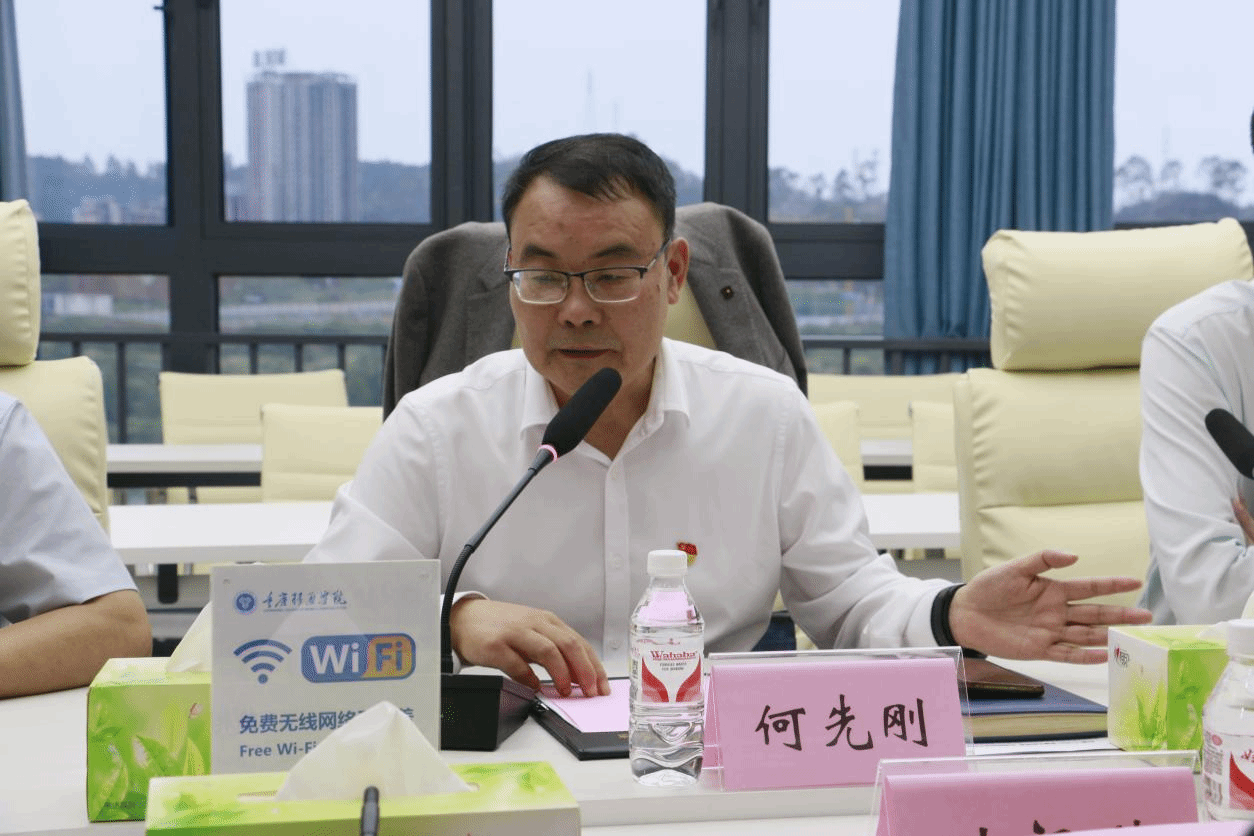 党委副书记、常务副校长周伟介绍我校办学基本情况、育人模式、完满教育和办学成果等方面。周伟表示,重庆移通学院以“四位一体双院制+特色课程”育人模式,作为一所定位“信息产业商学院”高校,学校以学生为中心,大力开展素质教育,致力于成为“双一流之外的首选大学”,希望座谈交流,双方在人才培养能力提升、科学研究、创新平台建设等方面互相学习、互相借鉴,共同推动高等教育事业的发展。