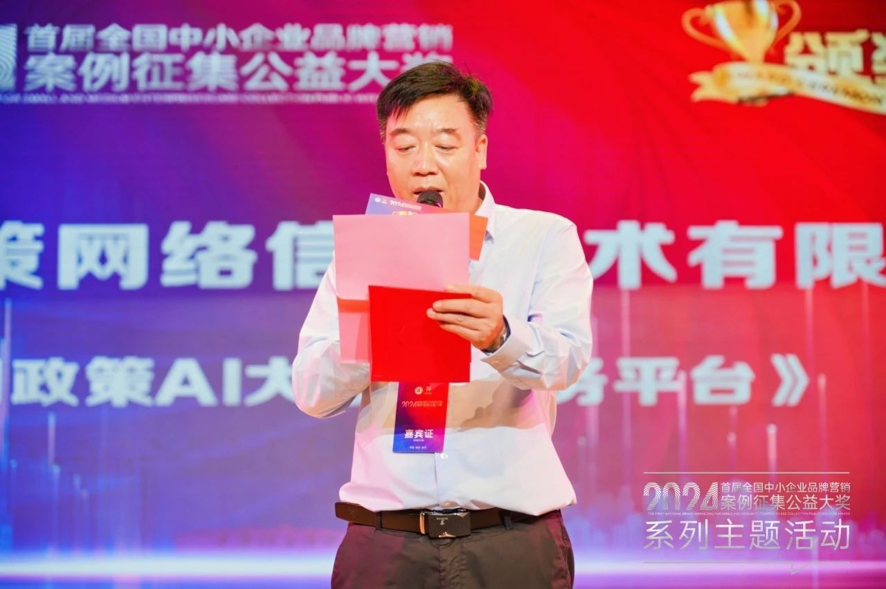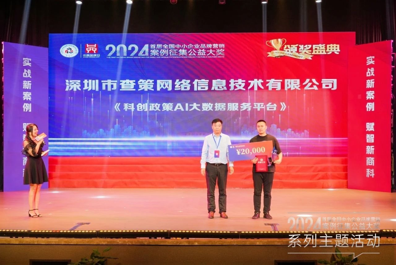 深圳市查策网络信息技术有限公司案例《科创政策AI大数据服务平台》获评最佳服务营销奖,全国品牌社团组织联席会第四届冬季年会轮值主席王满平为其颁奖;