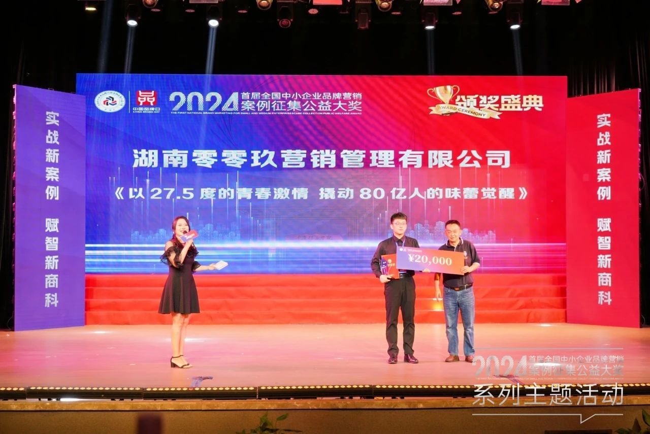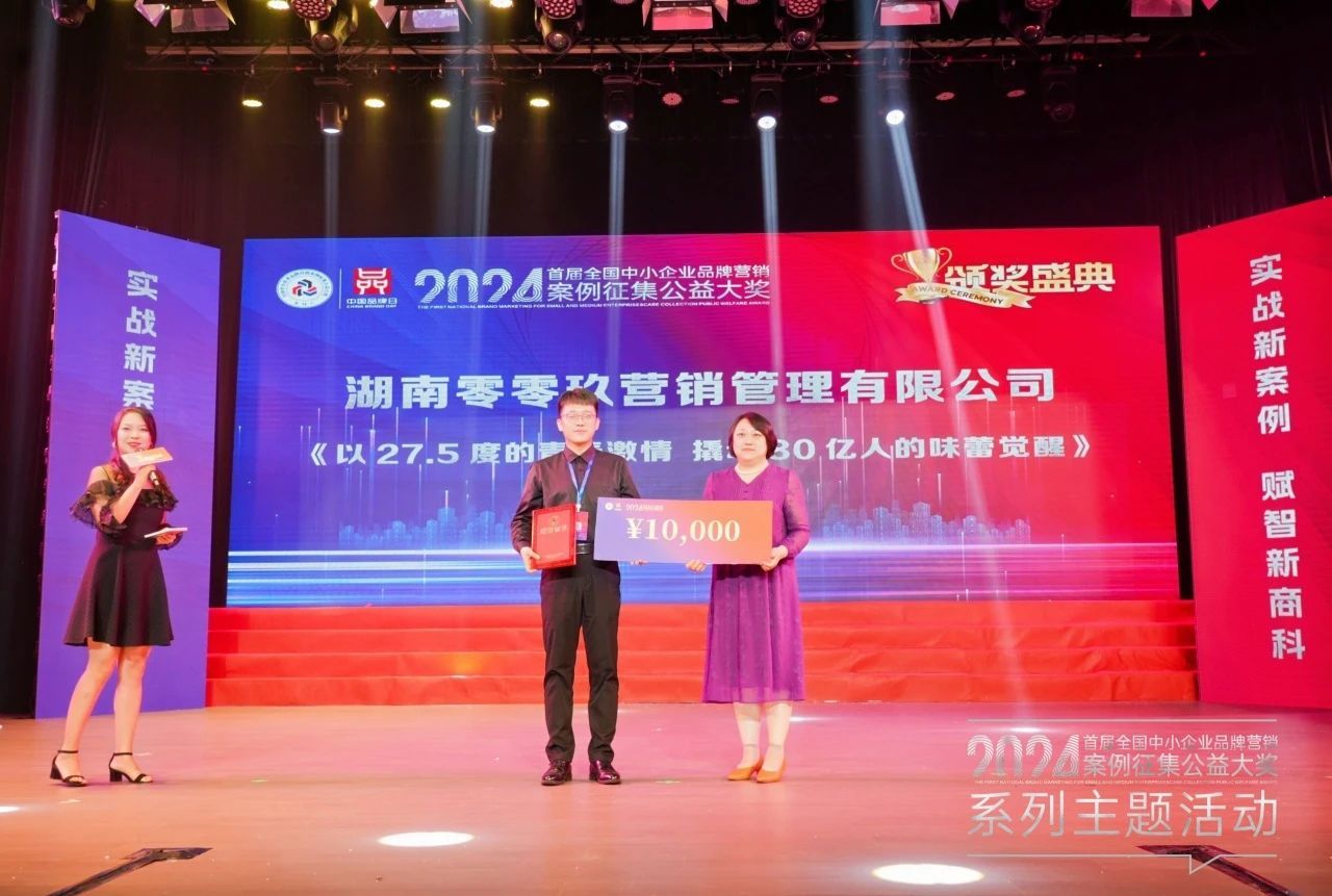 湖南零零玖营销管理有限公司案例《以27.5度的青春激情,撬动80亿人的味蕾觉醒》获评最佳平面奖,全国品牌社团组织联席会首届年会轮值主席、重庆市品牌学会党支部书记谭宏教授为其颁奖;