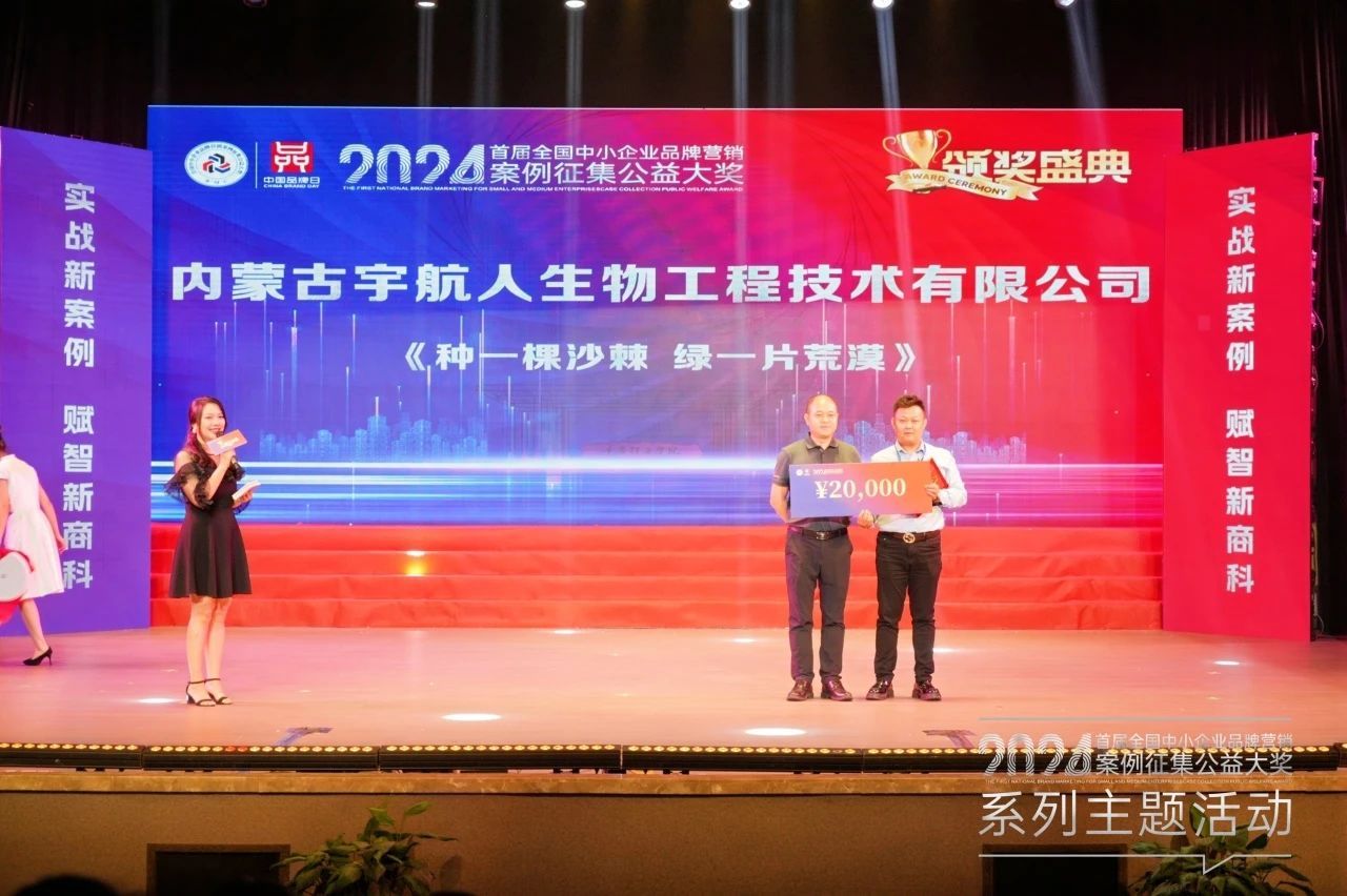 内蒙古宇航人生物工程技术有限公司案例《种一棵沙棘 绿一片荒漠》获评最佳社会责任奖,南方略咨询集团重庆分公司总经理古怀亮为其颁奖;