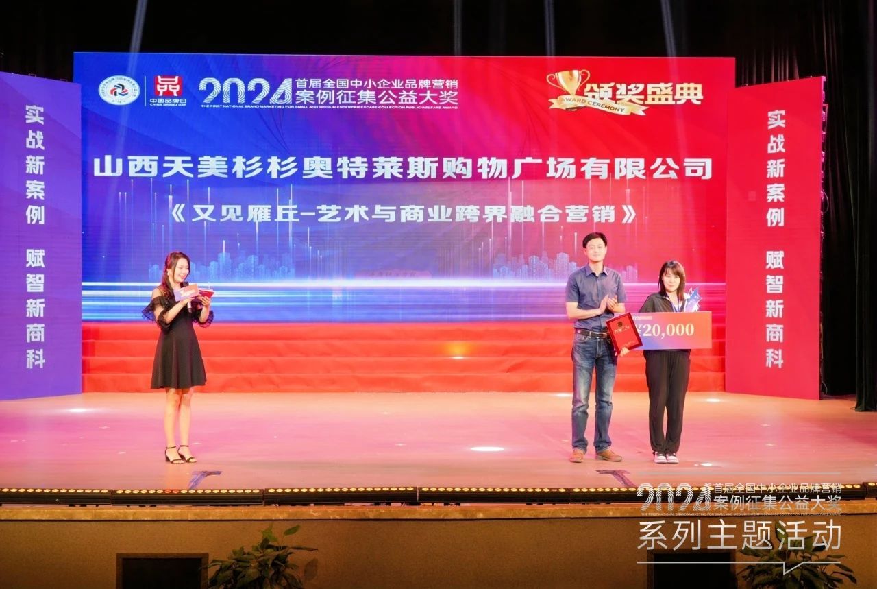 山西天美杉杉奥特莱斯购物广场有限公司案例《又见雁丘-艺术与商业跨界融合营销》获评最佳跨界合作奖,重庆移通学院常务副校长周伟为其颁奖;