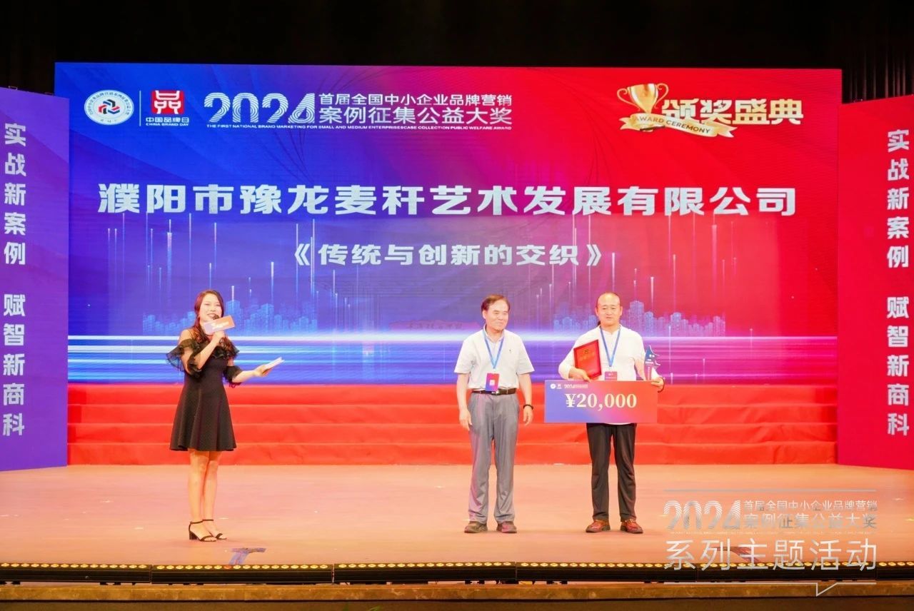 濮阳市豫龙麦秆艺术发展有限公司案例《传统与创新的交织,麦秆艺术的魅力展现》获评最佳国际营销奖,欧洲国际营销大会科学委员会委员、南开大学商学院教授李桂华为其颁奖;