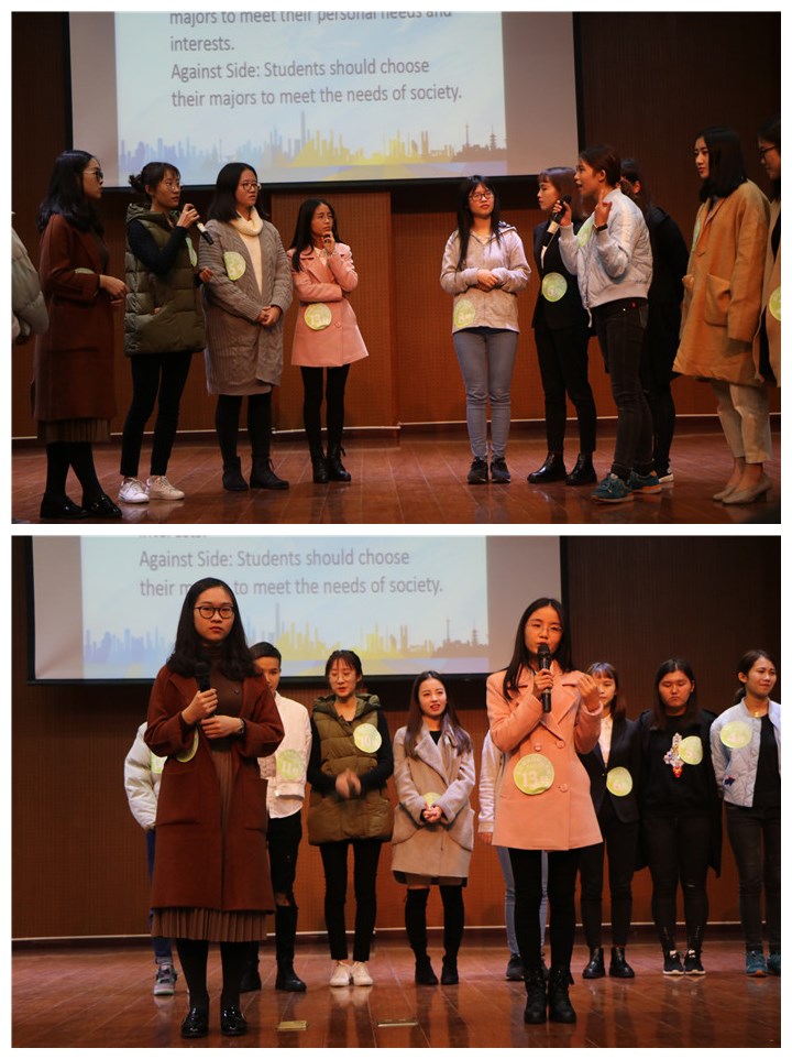 来自鱼城书院的三名学生在即兴演讲环节里发挥出色,评委老师们“破天荒”地决定让三名学生同时晋级,她们微笑着相拥走下舞台。花果书院的即兴演讲题目十分有意思,话题是“如果有机会你想和哪一位名人共进晚餐?并想和他讨论什么?”。同学们纷纷敞开心扉,表达了自己的想法。远景书院的英文辩论是一台压轴戏,题目是“你认为个人能力和家庭背景哪个更重要?”现场的气氛十分活跃,双方唇枪舌剑,现场爆发出雷鸣般的掌声。老师们点评说,大家表述观点清晰有力,这场辩论赛非常精彩!