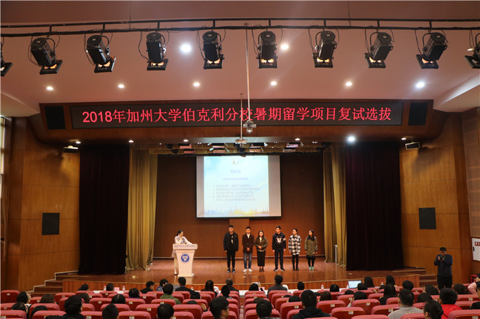 为深入贯彻学校“未来社会中坚阶层领导者”的人才培养理念,激励在“三位一体”人才培养模式中表现突出的学生骨干、榜样力量,学校将提供哥伦比亚大学、加州大学伯克利分校暑期留学项目的顶尖交流学习平台。11月19日,2018年哥伦比亚大学、加州大学伯克利分校暑期留学项目复试选拔在下里巴人剧场拉开序幕。书院部穆春江老师、外语系外教Clive、外语系刘菊老师、中德学院外教John、国际处张冠阳老师、中德学院徐瑶老师以评委身份莅临现场。