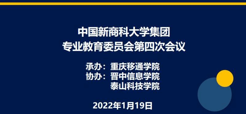为深入贯彻集团发展战略,推进教育教学改革,1月19日上午9点,中国新商科大学集团专业教育委员会第四次会议以线上形式顺利召开。参加此次会议的有集团教学总顾问、专业教育委员会主任李长萍教授,集团教学副主管、专业教育委员会副主任安世全教授,集团教学总督导胡继连教授,学科带头人陈立潮、邓军红,重庆移通学院校长张德民、副校长孙玺,晋中信息学院校长姬宇、副校长苏琳,泰山科技学院校长耿献文、副校长智英斌以及集团专业教育委员会全体委员共计51人。会议由李长萍教授主持。