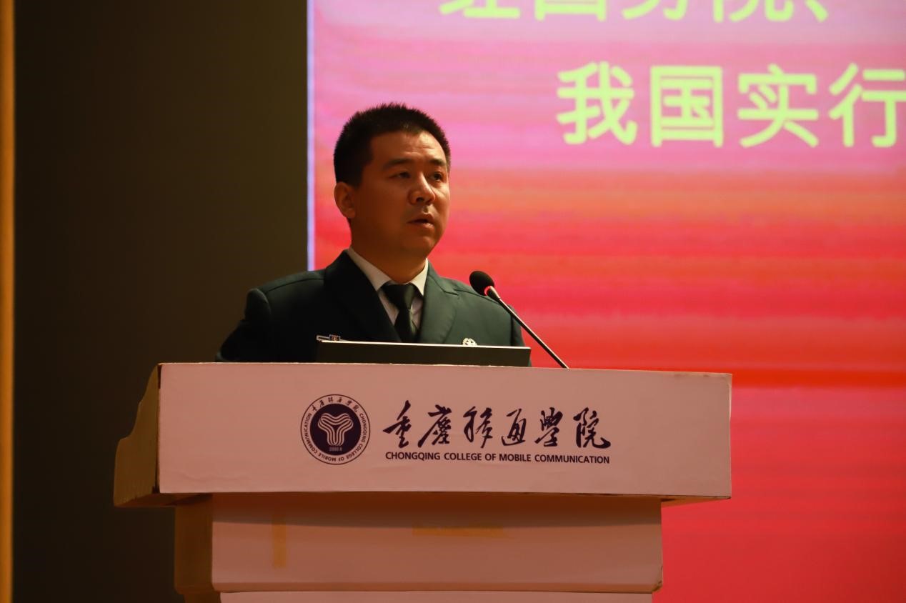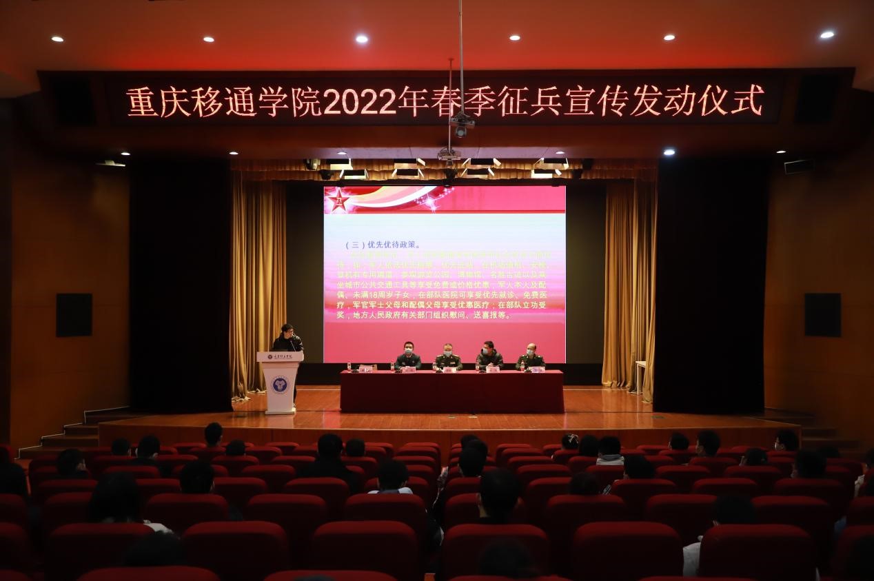 为响应国家号召,加强征兵工作宣传引导,根据国家对大学生入伍新政策鼓励大学生积极参军入伍,为军队输送高质量人才,我校于12月22日下午4点在下里巴人剧场开展2022年春季征兵宣传发动仪式。本次宣传仪式由合川区人武部政治工作科科长郑炜主讲,合川区委常委、区人武部大校部长李锋斌、合川区合阳街道武装部长屈波,我校党委副书记、副校长周伟等领导莅临现场,全校共计300余名师生参与。会议由学生处学生科科长熊斌主持。