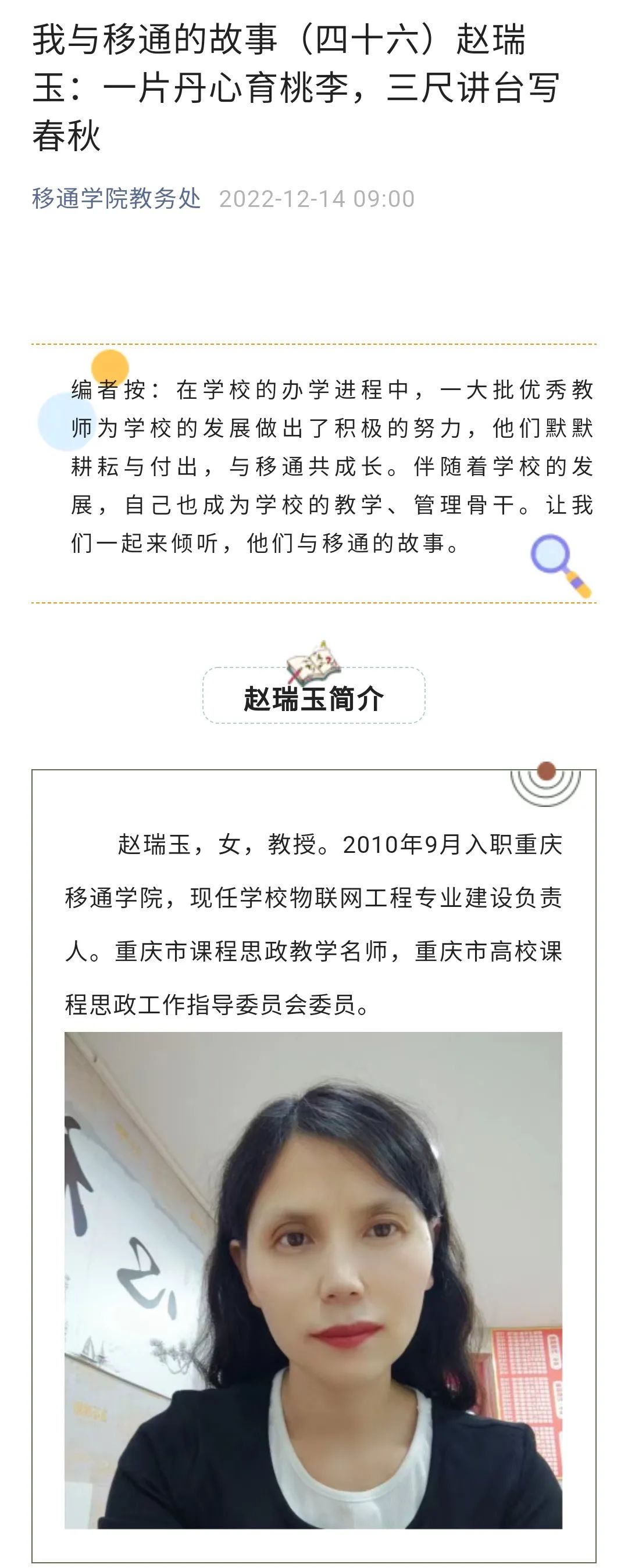 “我与移通的故事”是为全面做好学校品牌塑造与传播,由品牌营销与新闻中心和教务处共同开展的项目。该项目通过教职工的视角解读学校办学理念、办学特色、育人模式以及工作环境等展现学校对良好工作环境以及优秀教师畅通的上升渠道、奖励机制等,多方位、多样性、立体化将鲜活的教师形象与学校品牌塑造相结合,增强学校对优秀人才的吸引力,增加社会对学校教育教学具体过程的了解,增进家长、学生对学校工作的理解。目前,该项目已经正式启动,品牌营销与新闻中心将结合教务处前期已有稿件与“移通故事·优秀教师”稿件,加大宣传力度,与教务处携手共同推动项目进展,并预计与2024年推出第一本系列实体丛书。