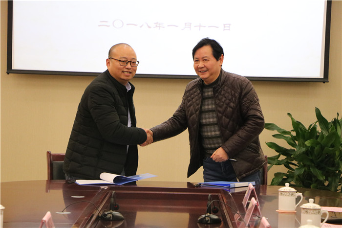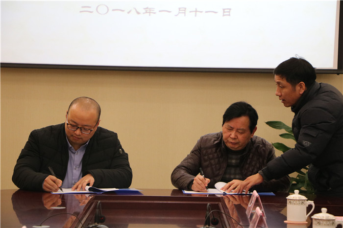 夏丁总经理向在座各位展示介绍了新以人科技有限公司的性质、人员规模及业务发展概况,他说:“新以人科技有限公司成立于2014年,位于重庆市九龙坡区,立足重庆本地市场,会同卓特劳务多年从事建筑、安装工程、劳务派遣等工作,具有丰富的工程、劳务、互联网运营和服务经验。其中,公司重点开发的一款专注建筑保险服务的互联网建筑平台---建筑e人近期更是火热上线,取得了不凡的社会反响,发展前景可观。”夏丁总经理诚恳地表达了对于即将与移通学院挽手共对市场发展,服务学院就业,实现互利共赢的目标的期望。经过双方进一步友好磋商,在外国语言文学系吴世银主任的牵头下,张德民院长代表移通学院正式与重庆新以人科技有限公司签订了校企合作协议并举行了揭牌仪式。