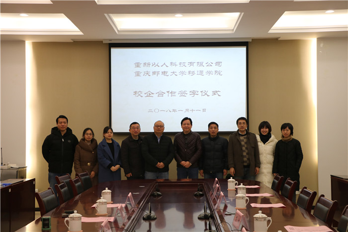 1月11日下午,重庆邮电大学移通学院与重庆新以人科技有限公司在行政楼107会议室举行了校企合作签约仪式。院长张德民教授,重庆新以人科技有限公司夏丁总经理、销售事业部邹弦总监及行政人事部杨宇主管一行三人,外国语言文学系吴世银主任、各教研室主任和相关老师出席签约仪式。签约仪式由吴世银主任主持。