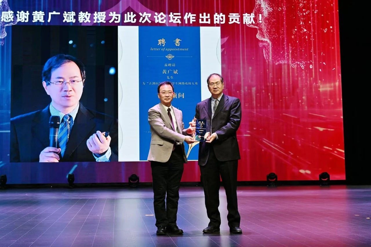 黄广斌认为AI在初级阶段以“人为主、AI为辅”的模式处理数据,帮助人类高效完成复杂任务,随着数据复杂度提升,AI将逐步转向“AI为主、人为辅”,成为智能经济的核心驱动力。“我们正好处在人工智能这个科技大变革的时代,很多人对人工智能另眼相看,其实我们应该更多地去拥抱人工智能。人和人交流、人和机器交流、机器和数字人交流、数字人和数字人交流——所有的交流都是在创造新的机遇、新的机会。”黄广斌指出,AI能够处理海量数据、快速迭代算法,弥补人类在信息处理速度和规模上的不足,甚至解决传统科学难题。但若AI发展失控,可能导致人类被取代,他强调需各领域专家共同制定策略,建立治理框架,同时鼓励科技工作者拥抱超前思想,通过交流与合作突破认知边界,以确保避免技术滥用或不可控进化。