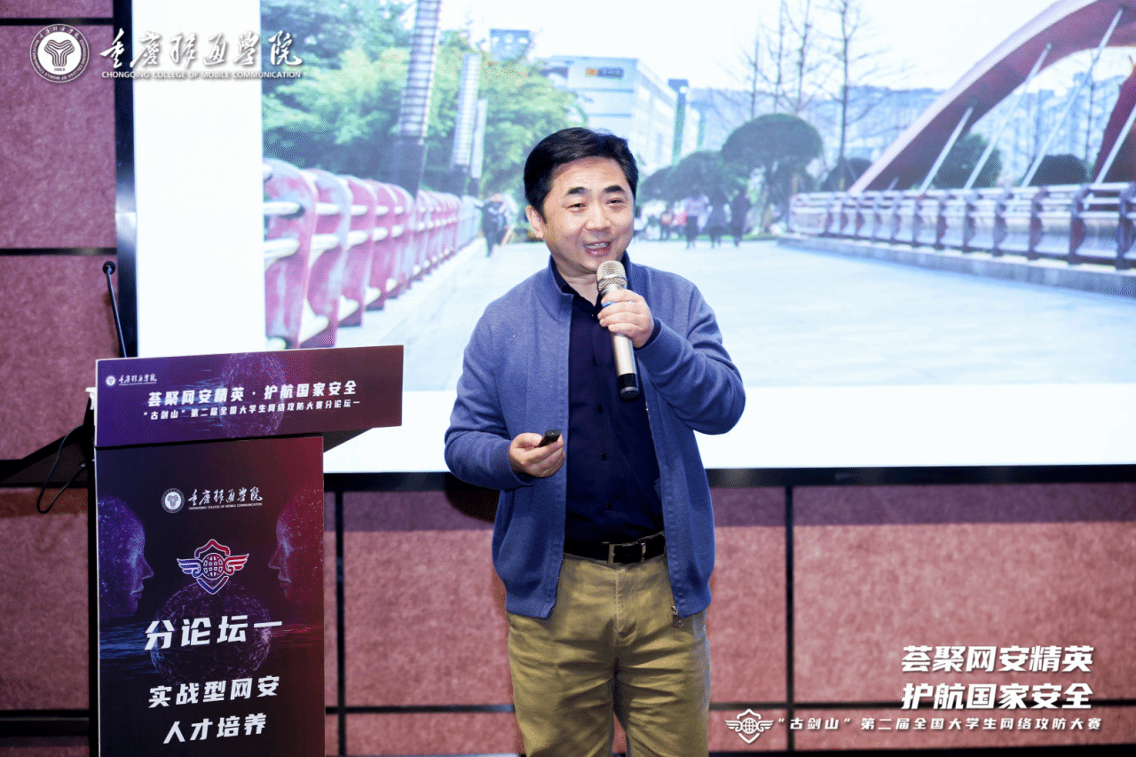 论坛开幕式上,重庆市綦江区政协副主席唐应良认为本次“古剑山”全国大学生网络攻防大赛为全国大学生提供了一个展示才华、交流经验、提升能力的广阔舞台,充分体现了重庆移通学院在服务国家战略、推动网络安全教育方面的担当和作为。他向在场学生及广大青年科技人才提出三个期待:一是做技术创新的尖兵,更做建言献策的谋士;二是做代码世界的侠客,更做红色基因的传人;三是做虚拟空间的守护者,更做实体经济的护航员。