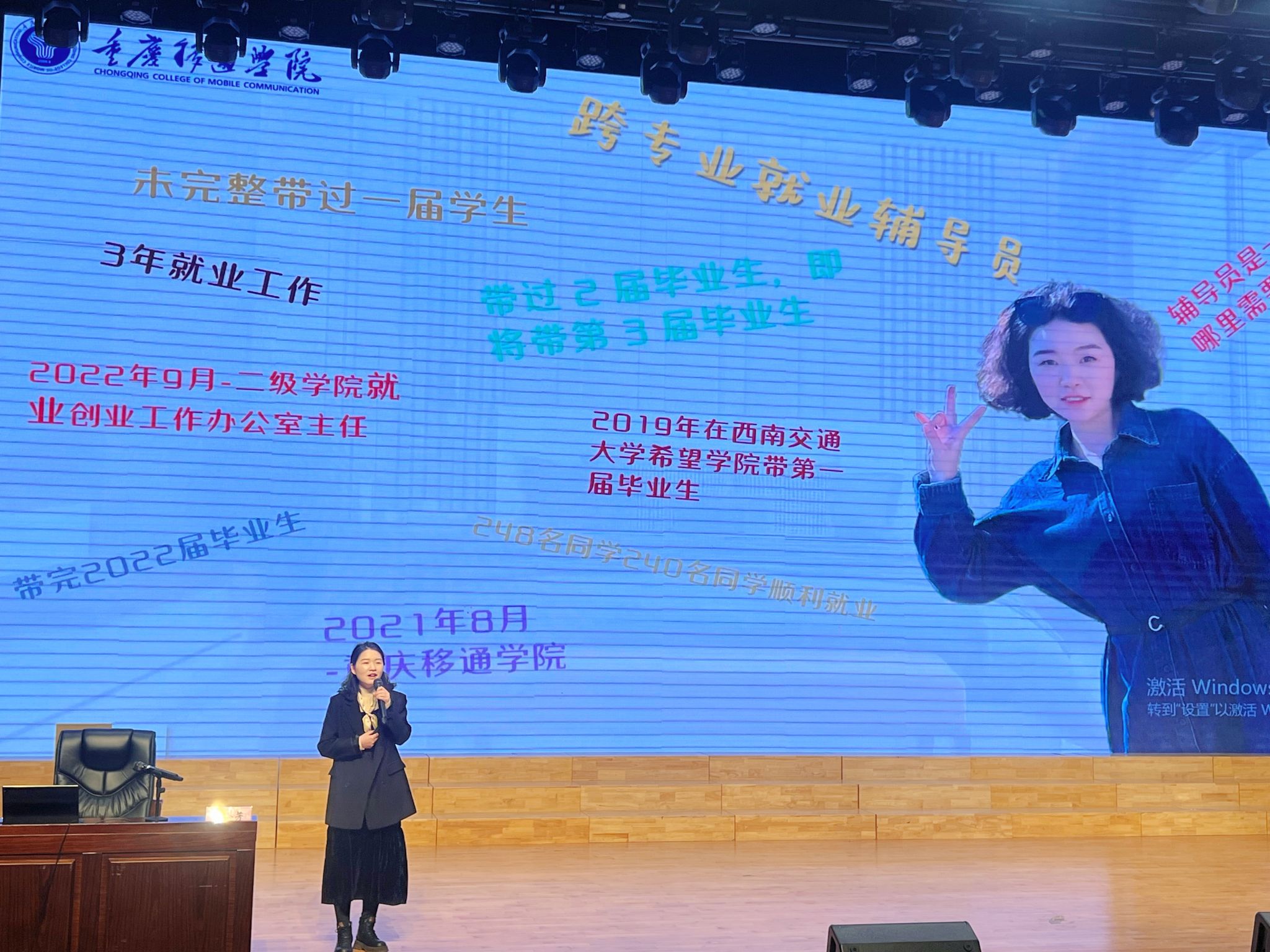 3月25日,由重庆市人力资源和社会社保局与重庆市教育委员会联合主办,重庆市人才交流服务中心与重庆市学生就业与创新创业服务中心联合承办的“高校毕业生就业指导队伍就业指导活动”在五一职业技术学院举行。来自全市30余所高校的300余名就业工作骨干参会,我校淬炼商学院辅导员杨伦芳受邀作为优秀辅导员教师代表,围绕“向上突破·向下深耕——辅导员就业工作的路径探索”主题作工作经验分享,受到参会教师高度赞扬。