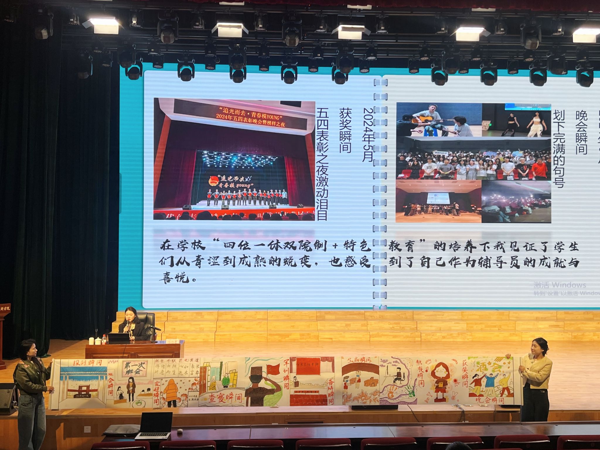 分享中,杨伦芳老师详细介绍学校“四位一体双院制+特色课程”人才培养模式,为学生成长、辅导员工作搭建坚实平台。谈及辅导员角色,她分享身负职业规划指导、就业信息提供等十种关键身份,重任在肩。针对不同年级学生,因材施教,精准施策,大一通过MBTI、霍兰德等多元测试,精准锚定学生职业方向;大二依能力图谱匹配职位,挖掘潜能;大三整合企业、校友等资源,为迷茫学子点亮前路;大四凭借七位一体导师制等多维联动,助力学生冲刺就业。对就业困难学生,深入剖析成因,推出“一核四驱动”帮扶体系与“十个一”帮扶工程,从心理、技能、岗位等全方位为学生纾困,分享多个帮助暖心案例,展现辅导员陪伴、引导的力量。