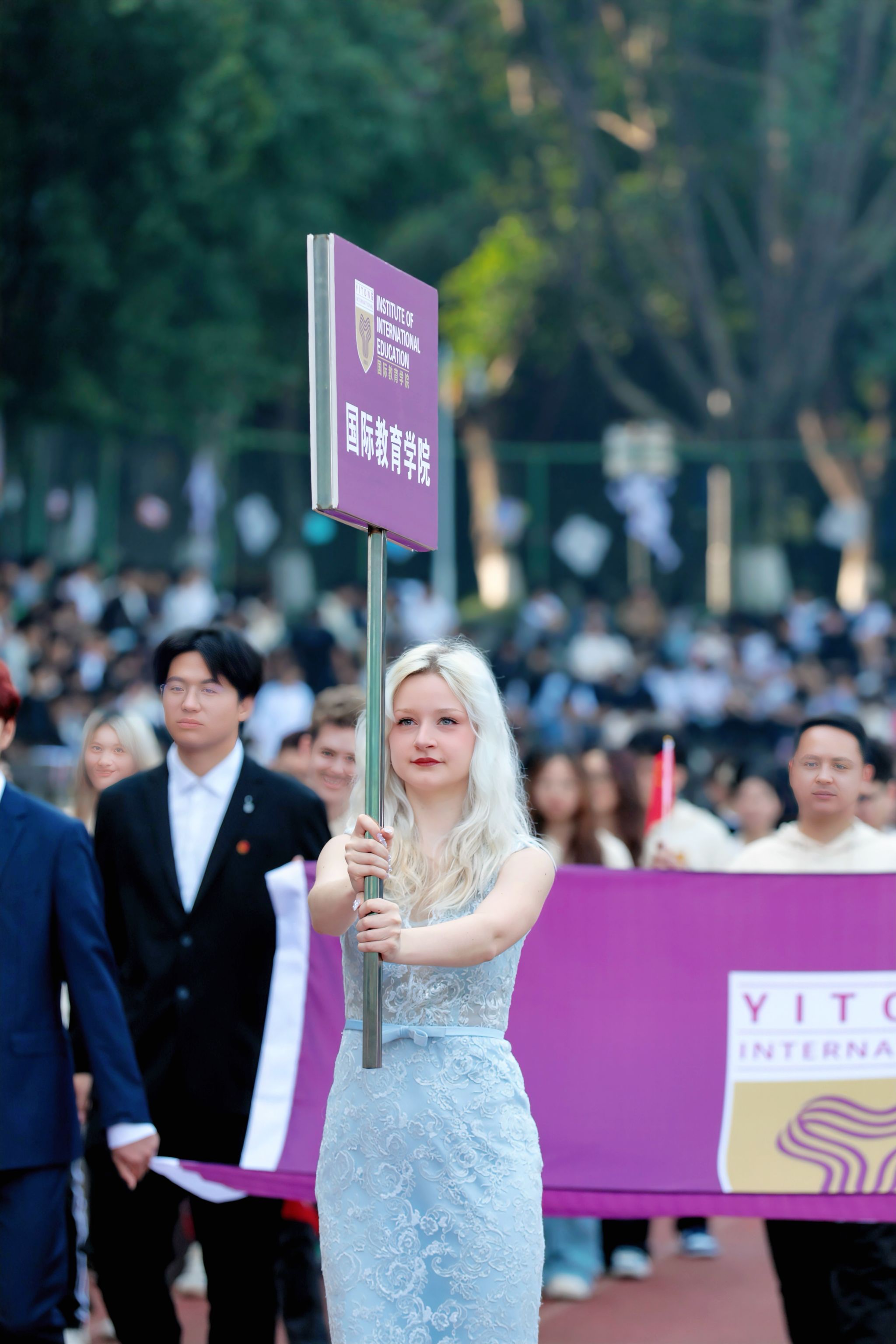 校旗队、特色标语方阵以及各学院代表队依次登场,充分展示了各自学院的独特风采。他们结合自身专业特色,以别样的形式呈现各自的风采。将学科特色“玩”进运动会的脑洞,刷新了同学们对入场式的传统认知,用灵动的舞姿与活泼的节奏彰显着各学院的魅力。