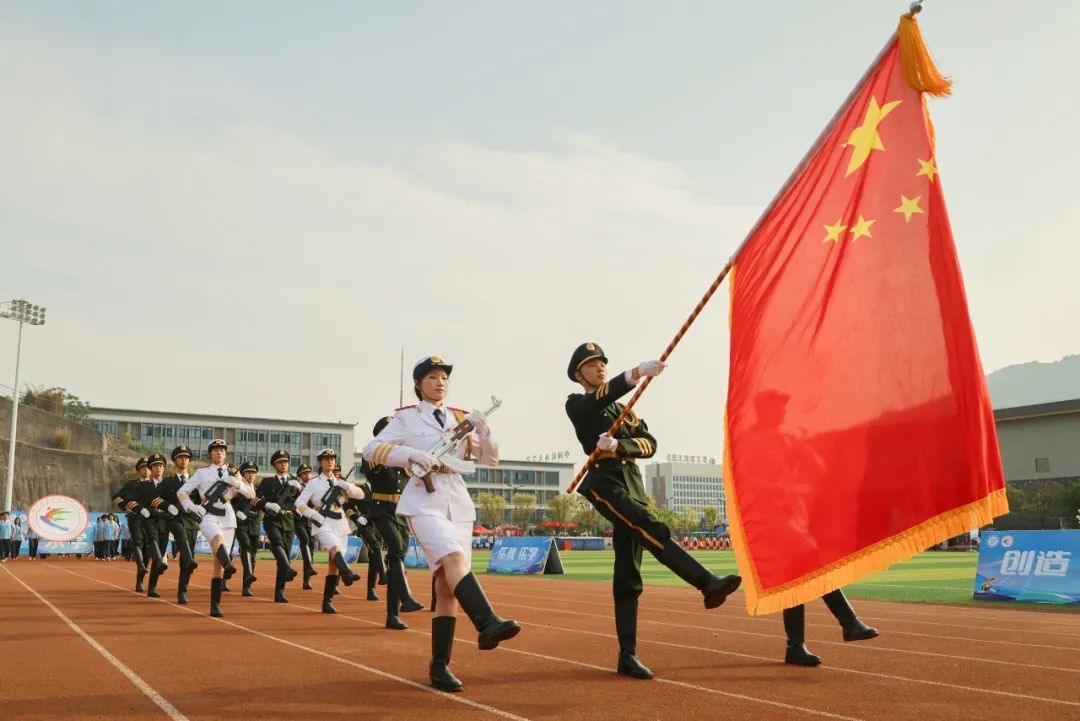 在雄壮的《义勇军进行曲》中,国旗班队员迈着铿锵有力的步伐护卫国旗入场。随着五星红旗冉冉升起,全场师生肃立注目,齐声高唱国歌,展现了移通学子深厚的家国情怀与昂扬向上的精神风貌。