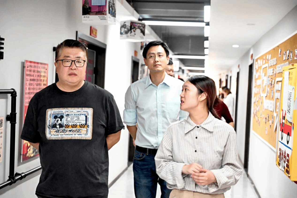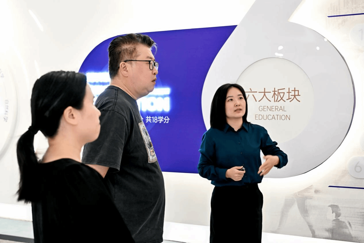 15日下午,小柯及其团队先后参观学校通识教育展厅、云数据中心、远景学院、剧本杀学院与爱莲书院。在参观过程中,小柯老师对学校“小班研讨+项目制学习”的创新模式表现出浓厚兴趣,特别关注了学生创作的跨媒介艺术作品集。在剧本杀学院,他还亲自体验了多种剧本杀活动室,惊叹沉浸式教育正在重塑学习边界。行程尾声,小柯表示:“书院群落将传统美学融入现代生活场景,这种活化传承正是当代艺术教育需要的养分。”