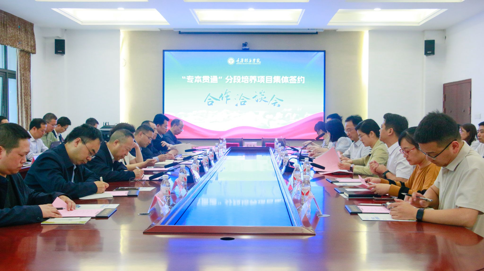 四所高职院校领导分别发言,就深化“专本贯通”项目提出建设性意见:重庆化工职业学院党委副书记、校长李廷真表示,将共同构建无缝衔接的升学通道;重庆科创职业学院副校长田一平提出整合课程体系、师资力量等资源,提升项目社会认可度;重庆水利电力职业技术学院副校长张守平建议建立联合工作机制,优化一体化课程体系;重庆轻工职业学院副校长徐兴旺从课程设置角度提出人才培养路径优化建议。