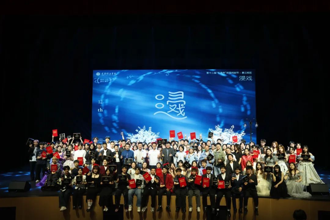 4月27日晚,原创实验短剧《冬》在重庆移通学院綦艺大剧院震撼上演,为期19天的綦江校区2025年“名角杯”校园戏剧节正式画上句点。本届戏剧节以“浸戏”为主题,累计举办14场舞台演出、2场名师授课及17场特色活动,创意短剧、剧本朗读、名师讲座等赛事有序开展吸引校内外观众超万人次,为师生构筑了一场穿越时空、联通心灵的艺术盛典。教育部高等学校动画、数字媒体专业教学指导委员会委员、东北大学秦皇岛分校管理学院教授、玉棠书院名誉院长苏锋,重庆移通学院副校长李文豹,校长助理梁少锋、谢银平及相关单位负责人莅临现场,共同见证这场青春与戏剧的深度对话。