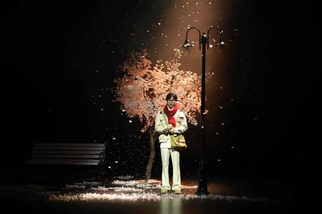作为闭幕大戏,《冬》以冬夜公园为凛冽舞台,聚焦大学生李书航与打工者陈晓兰这对恋人理想与现实的撕裂博弈。浪漫主义诗人与背负生存枷锁的底层女孩,在飘雪中展开理想与现实的血色博弈:秋千架上摇晃的纯真往事,终被药瓶与银行卡的碰撞声击碎。剧作通过围巾的温暖缠绕与银行卡的冰冷交割、诗意与生存的冲突,剖开阶级鸿沟下人性的尊严挣扎:雪地上徒留的脚印不仅是个体命运的悲鸣,更化作对系统性压迫的无声控诉——纯白雪花覆盖的从来不是公平世界,而是将底层群体推向绝境的沉默寒冬。话剧层层揭示底层群体的生存困境,呈现出一场关于残酷青春的苦涩独白。